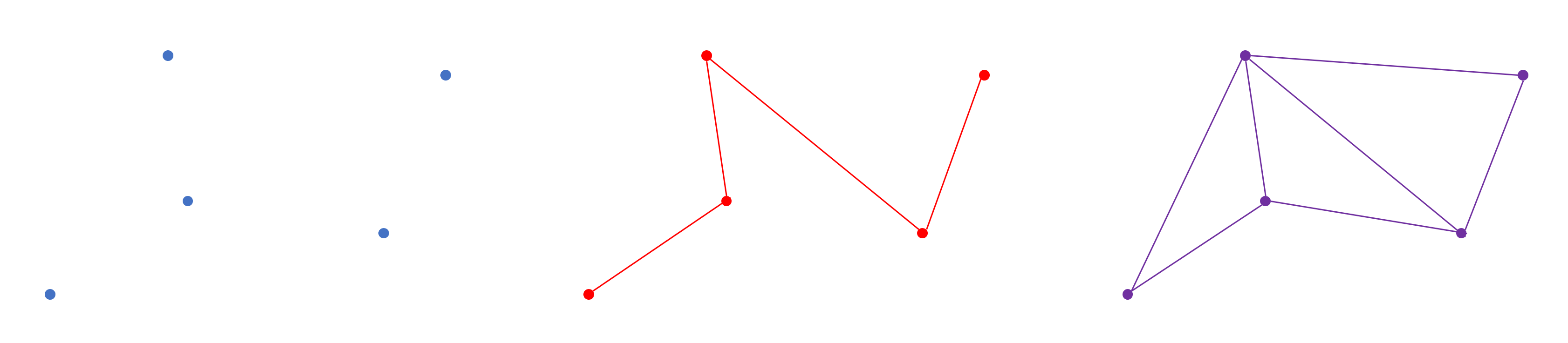 From left to right: a point list, a line list, and a triangle strip