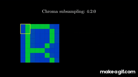 If you are wondering, "where did green go?", well it's still there! You can think of chroma blue as a ratio/contrast of green to blue in the pixel, and chroma red as a ratio/contrast of red to green. Just a little clever math to keep all three colors: nothing lossy here (yet)!