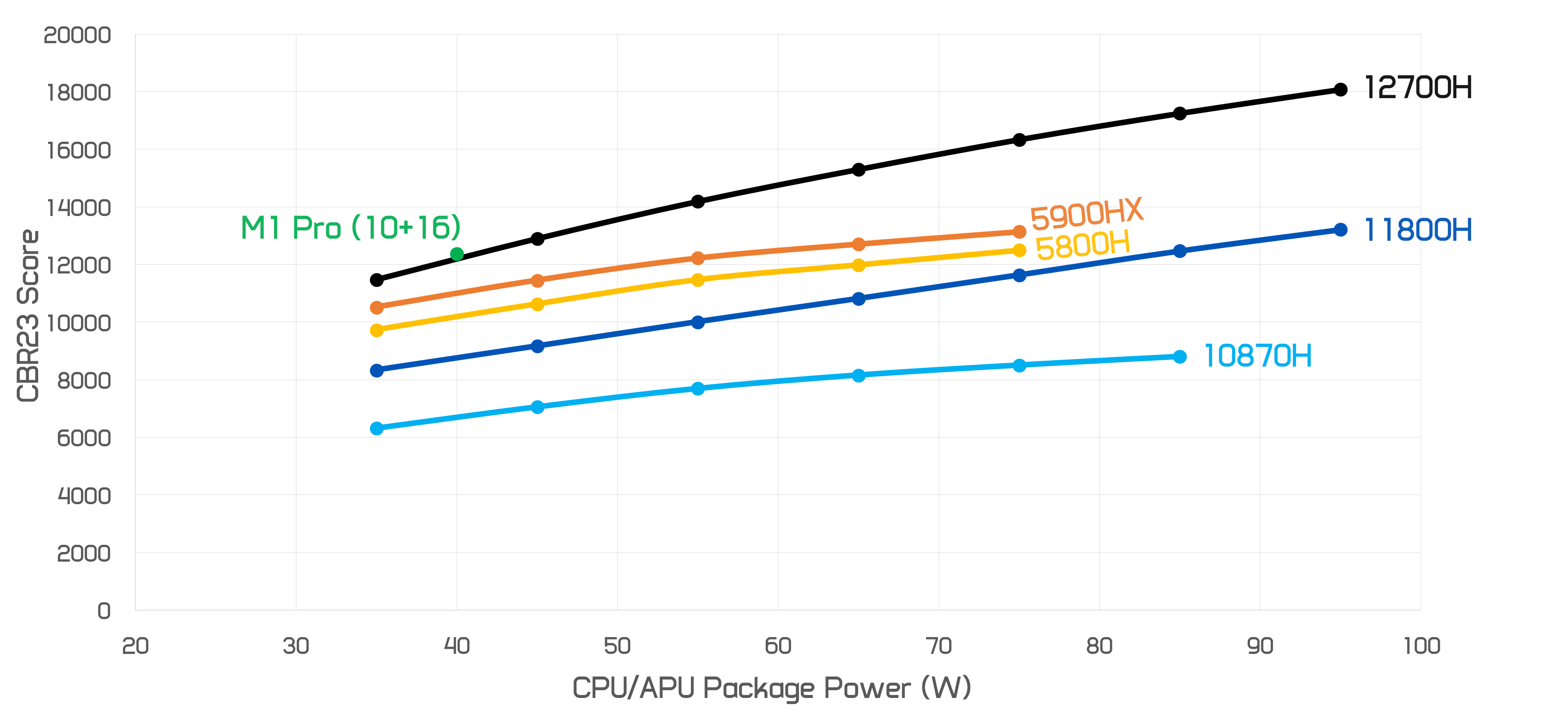 There's not a lot of weaknesses to bring up here to be honest. The toughest battle is between the 12700H and Apple's M1 Pro, but in many instances the 12700H is faster (especially at high power levels) and even has the capability to be similar in terms of sustained performance per watt.
