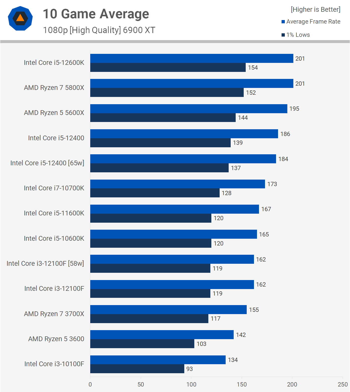 Here's a look a the 10 game average data and overall we think it's fair to say Intel's latest quad-core made out very well in many of today's games, especially given we were often using slightly dialed down quality settings at 1080p with a Radeon RX 6900 XT.