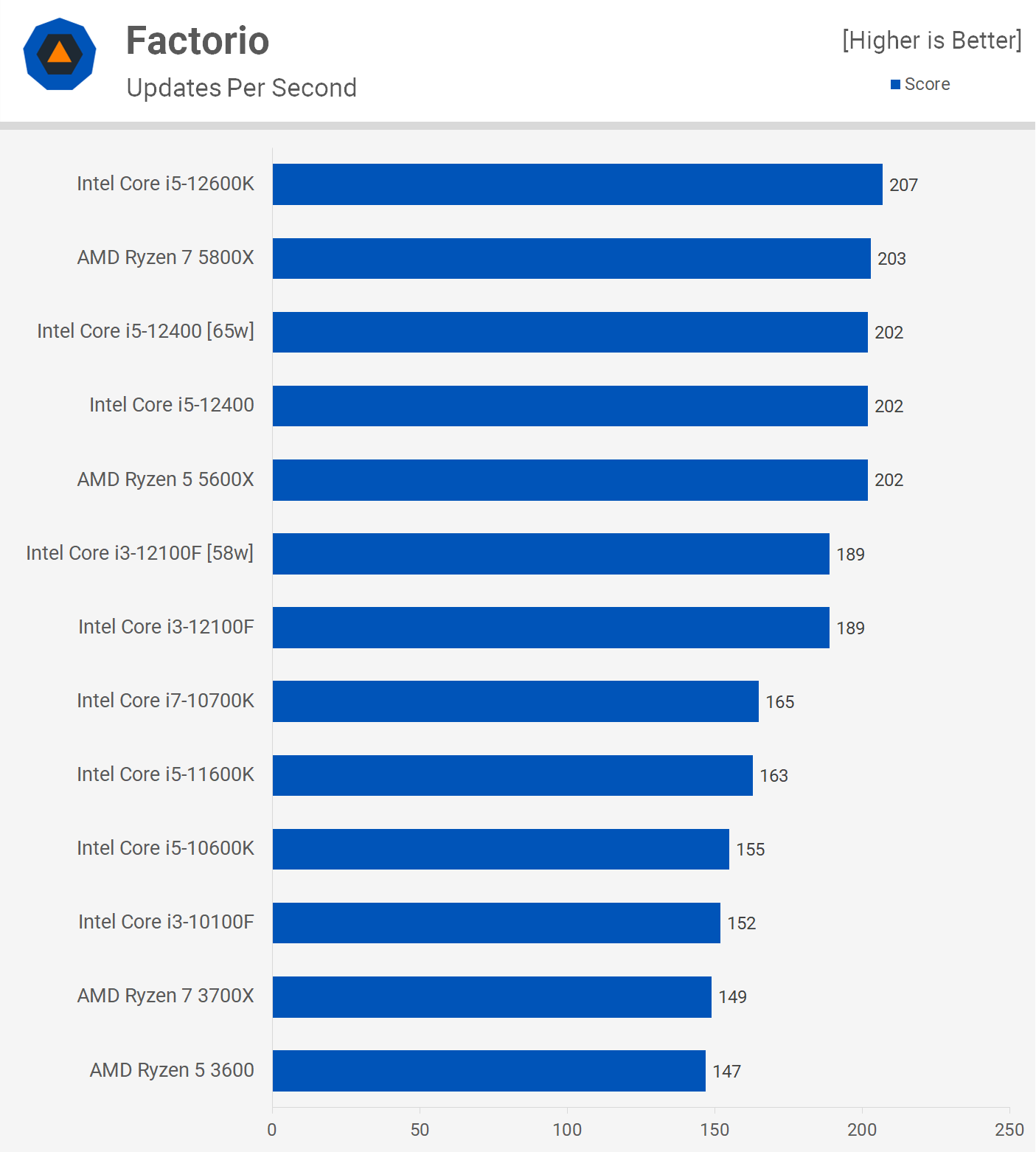 We're including Factorio in the application benchmarks as we're not measuring FPS, but updates per second. This automated benchmark calculates the time it takes to run 1000 updates. This is a single thread test which apparently relies heavily on cache performance.