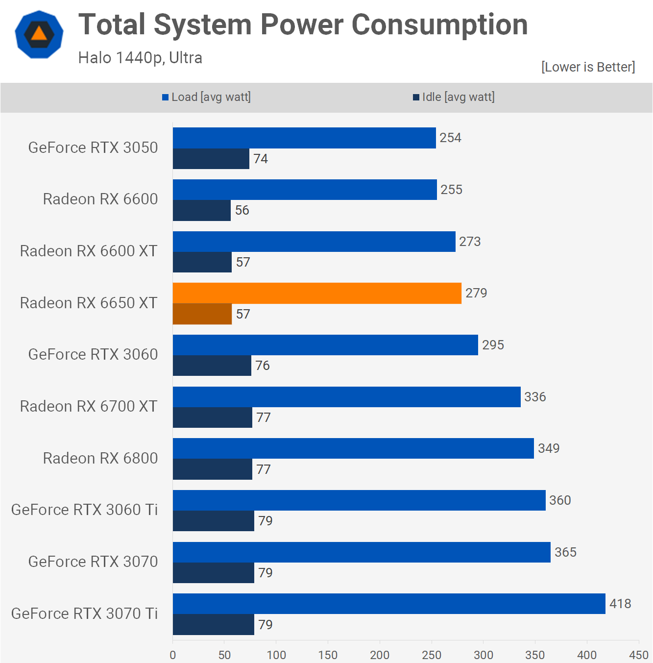 When it comes to power consumption, the 6650 XT is quite efficient, only increasing total system usage by 2% from the 6600 XT, and that meant power usage was 5% less than that of the RTX 3060. So not a significant difference when compared to the GeForce competition, but the 6650 XT was faster while using less power.