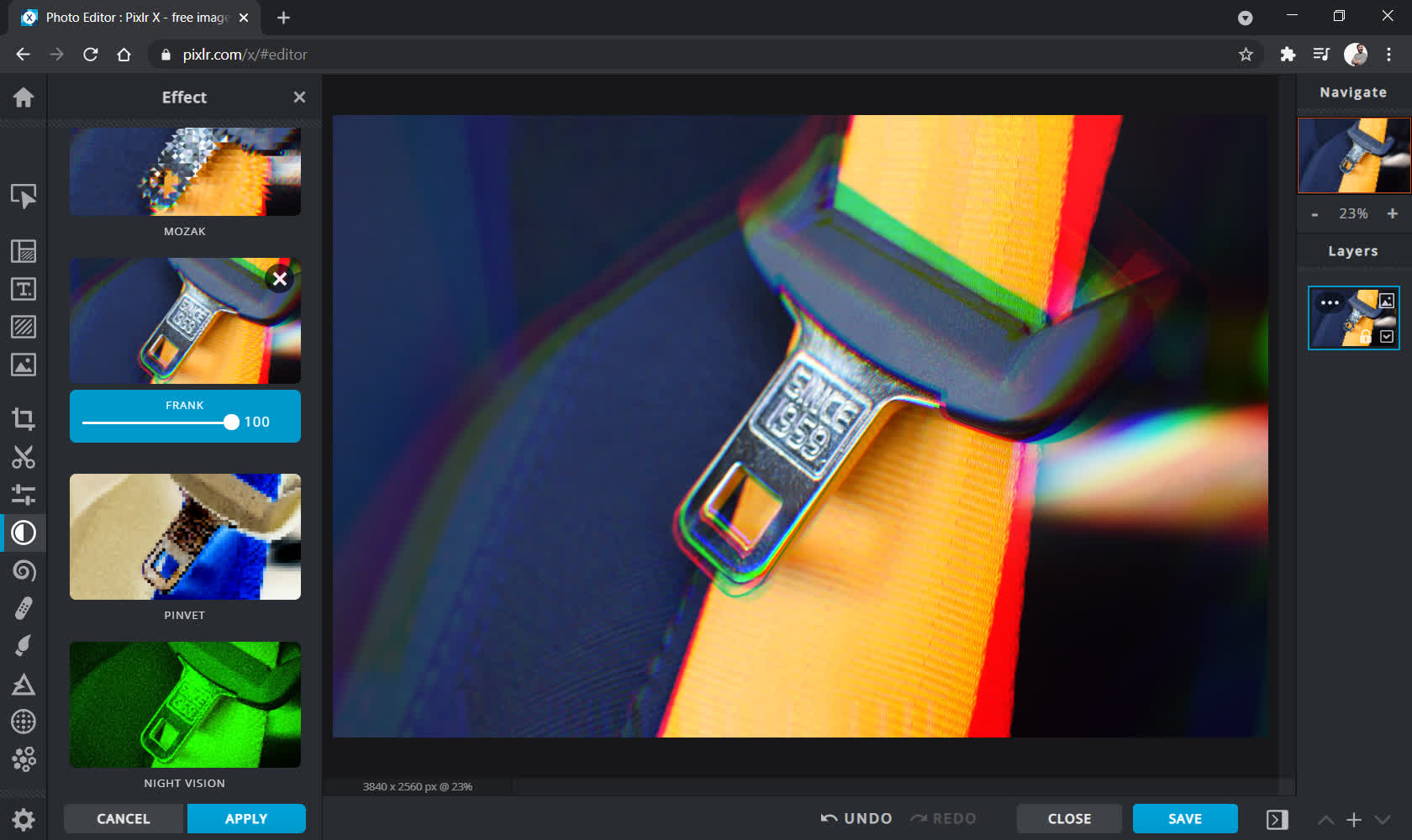 Pixlr X is meant to be the easier application, for one-click effects and touch-ups, while Pixlr E is the more advanced application. Both are free with ads, but there are premium subscription models available that provide more templates and other creative assets, as well as support for larger images.