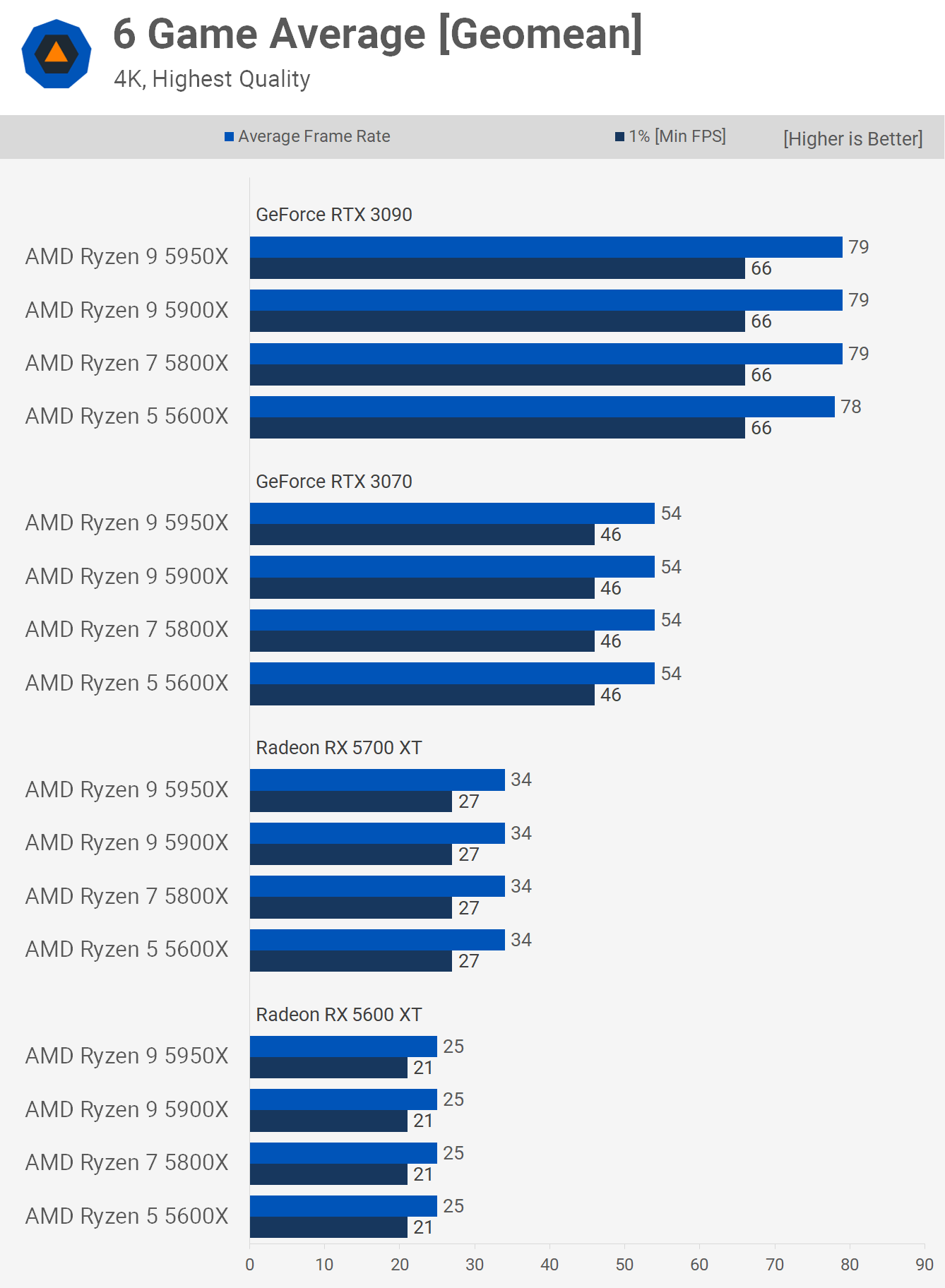 It doesn't matter how fast your graphics card is, you can go right up to an RTX 3090 and you'll sacrifice nothing by using a Ryzen 5 5600X.