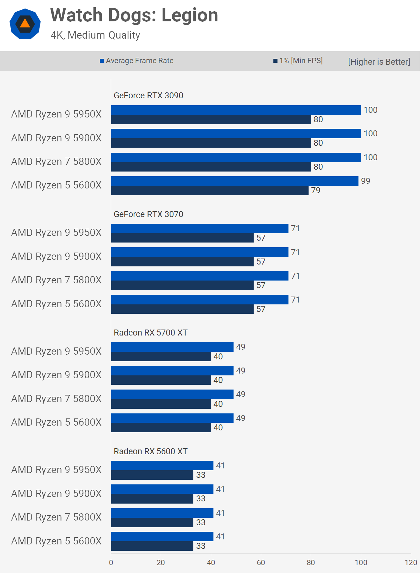 Moving on to Watch Dogs Legion and this is another new triple A title that's a lot like Horizon Zero Dawn in the sense that it's not very CPU demanding, again assuming you have a reasonably modern CPU.