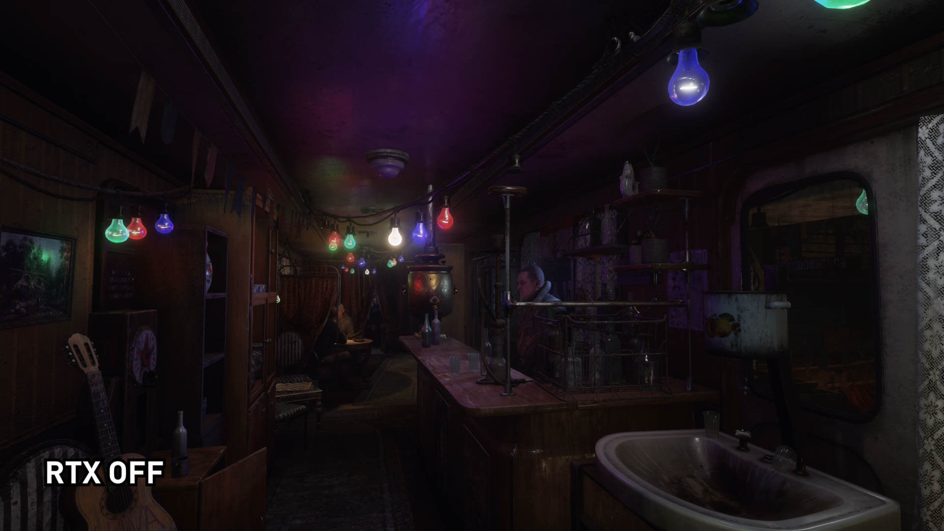 Personally, having played more of Metro Exodus than in our initial review - we've now finished the entire game - what struck me about RTX wasn't necessarily how it looked when it was on, but how the game looks when you turn it off. Especially in the various train scenes, the game looks natural and well lit with RTX on, but when you turn it off after having it on for a period of time, it looks a bit strange and flat due to that unnatural fill light.