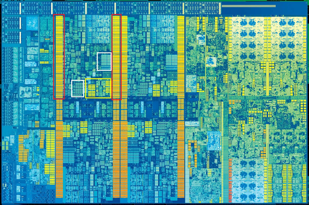 The above image is a zoomed in shot of a single core from Intel's Skylake desktop processor design.