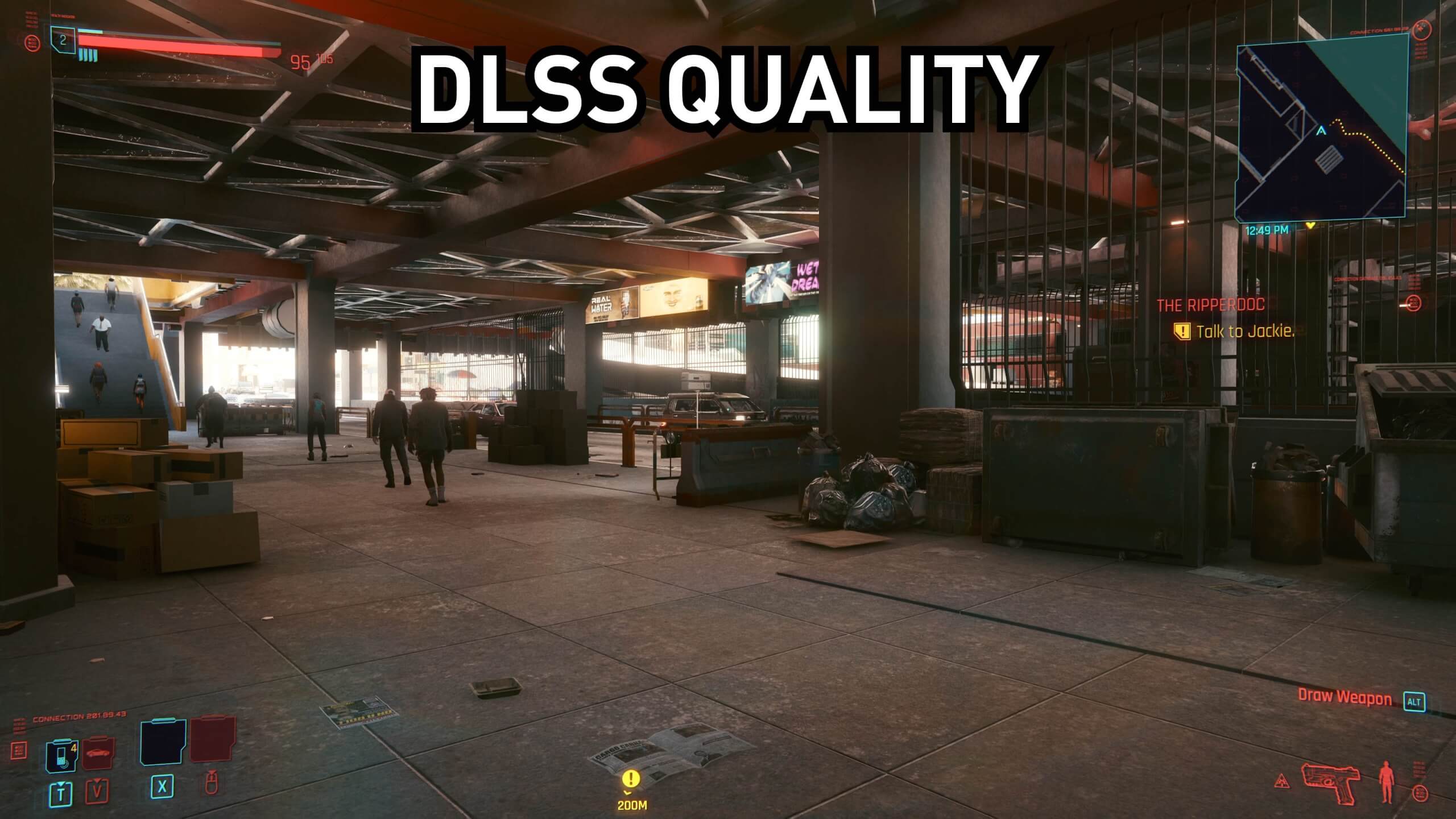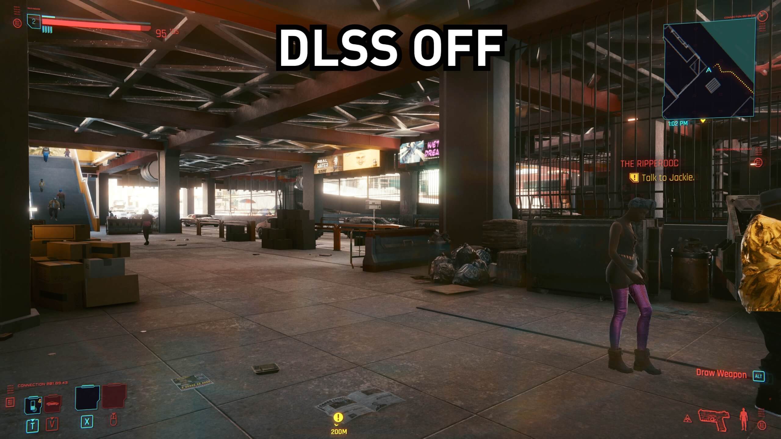 While not identical to native rendering, using the DLSS Quality mode in some areas can be better and others a tad worse. Overall though, DLSS 2.0 delivers a good experience and a much necessary boost. Performance is very good with DLSS enabled, and honestly Cyberpunk 2077 would be basically unplayable with ray tracing and native rendering without this resolution scaling + AI magic.