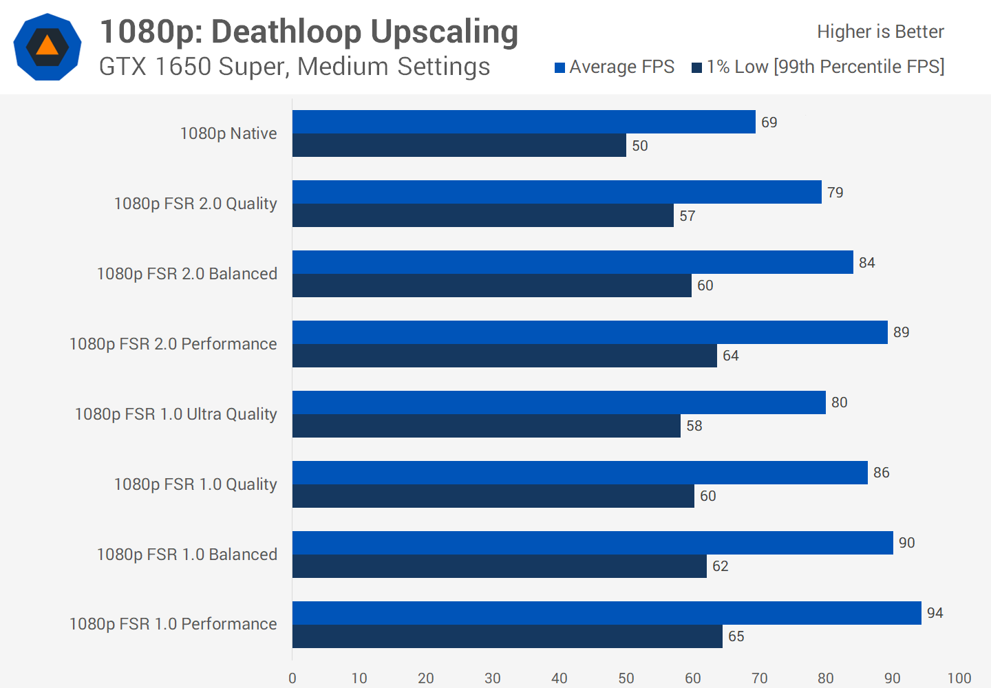 GeForce GTX 1650 Super: FSR 1 vs. FSR 2 vs. Native