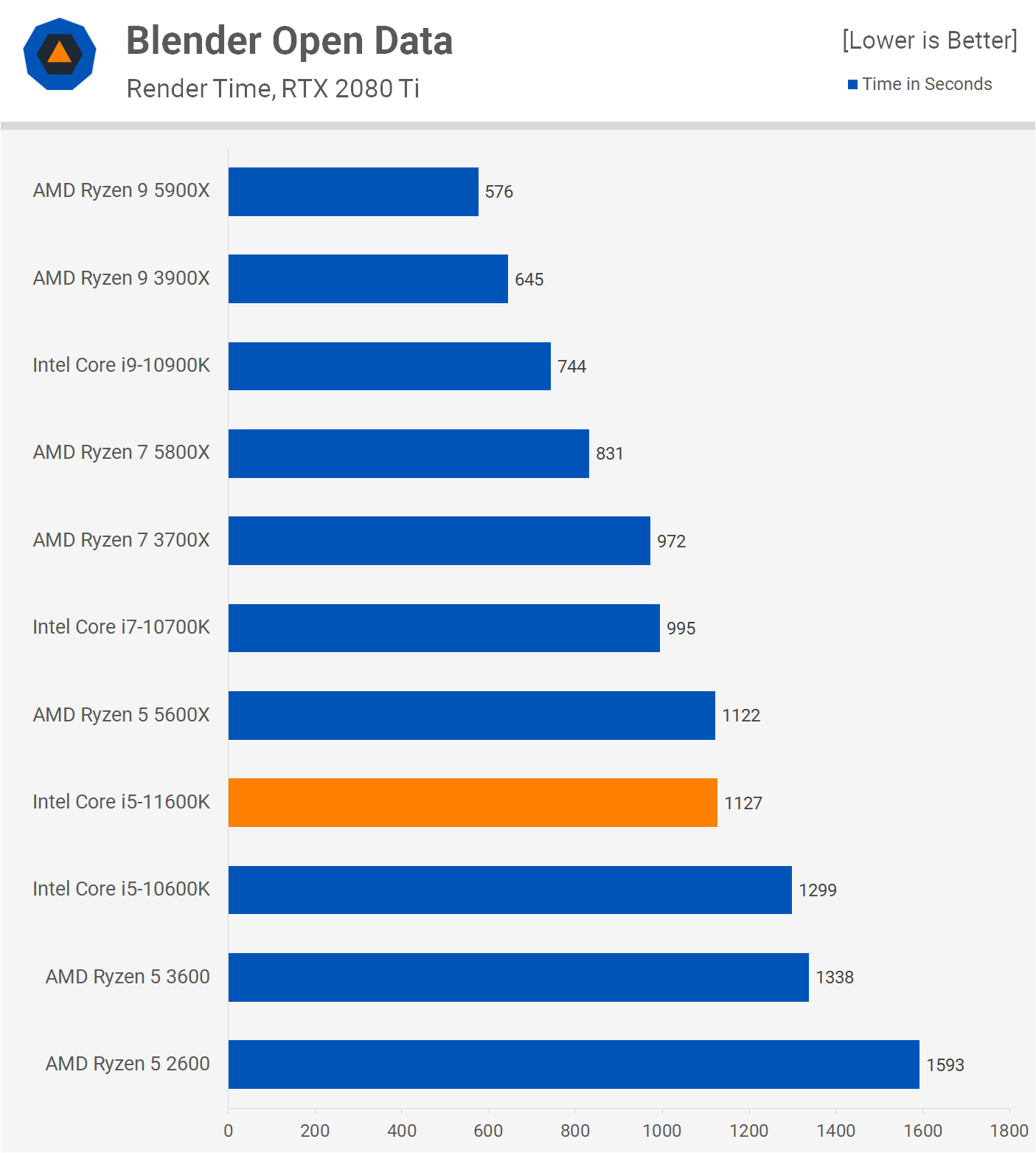 The 11600K made another nice step forward, this time in the Blender Open Data benchmark where it matched the 5600X, offering a 15% performance boost over the 10600K.
