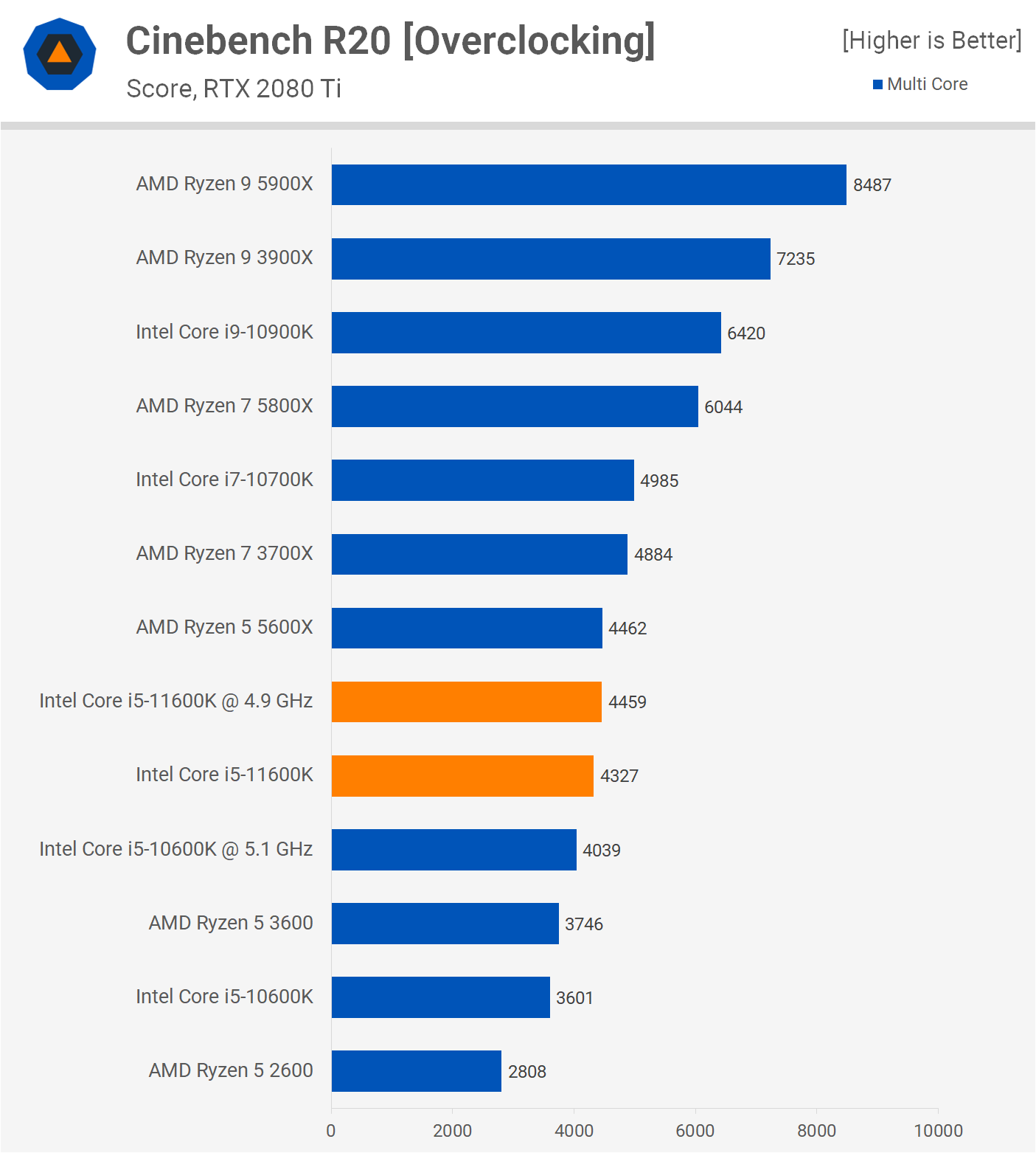 Starting with Cinebench R20, we see a very impressive 20% performance uplift for the 11600K over the previous generation and while that wasn't enough to beat AMD's 6-core offering, it did get Intel up to speed. The 5600X is just 3% faster which is a negligible margin.