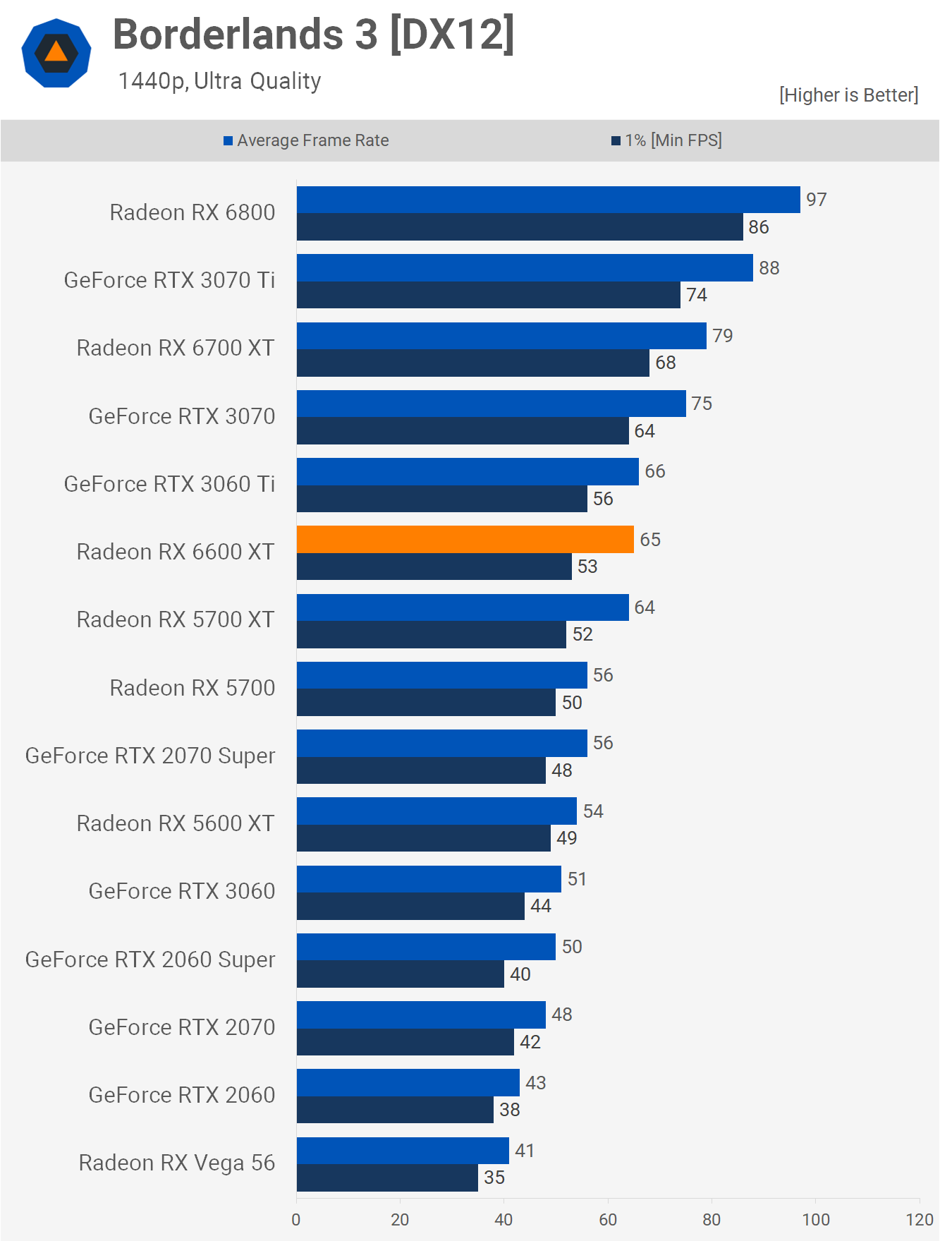 1440p sees more 5700 XT-like performance and that meant the 6600 XT was again a little over 10% slower than the 3060 Ti. That's our look at all dozen games tested, now let's take a look at the average performance.