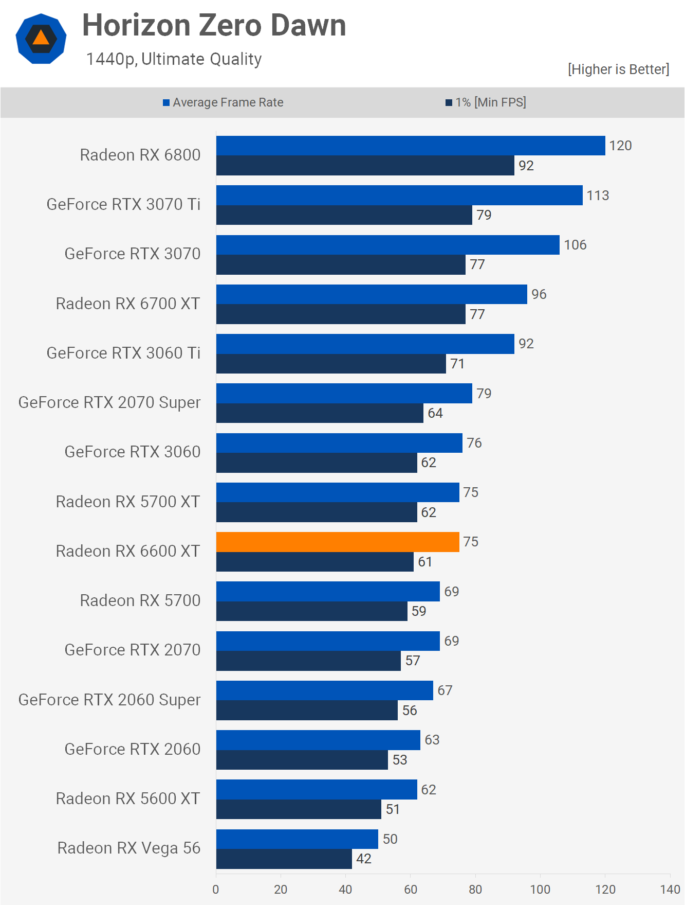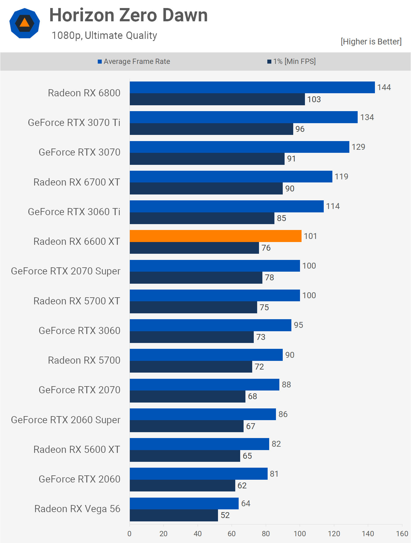 Moving on to Horizon Zero Dawn, we find that at 1080p the new 6600 XT can only match the 5700 XT while offering a very minor improvement over the RTX 3060, and I think it's fair to say that's a disastrous result for the suggested price.