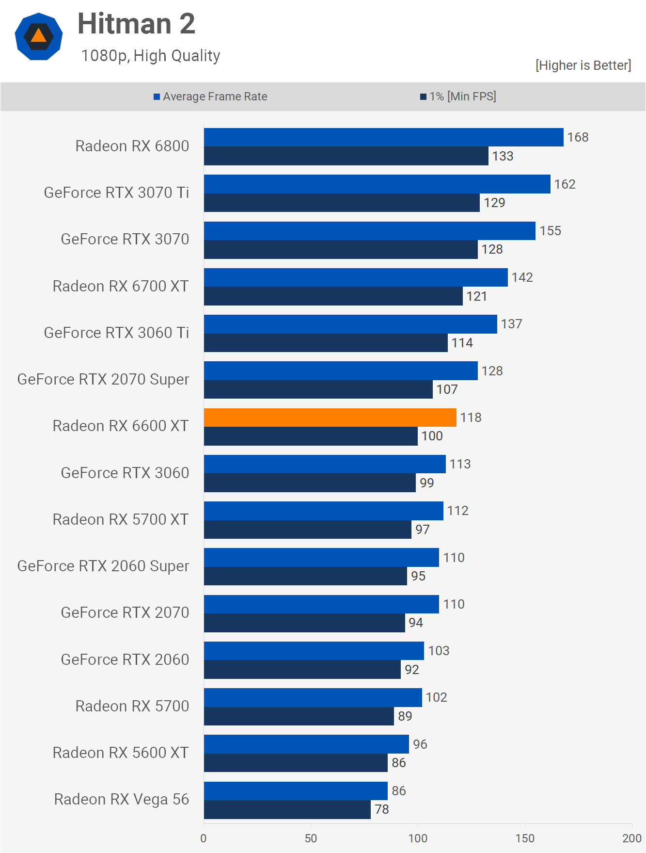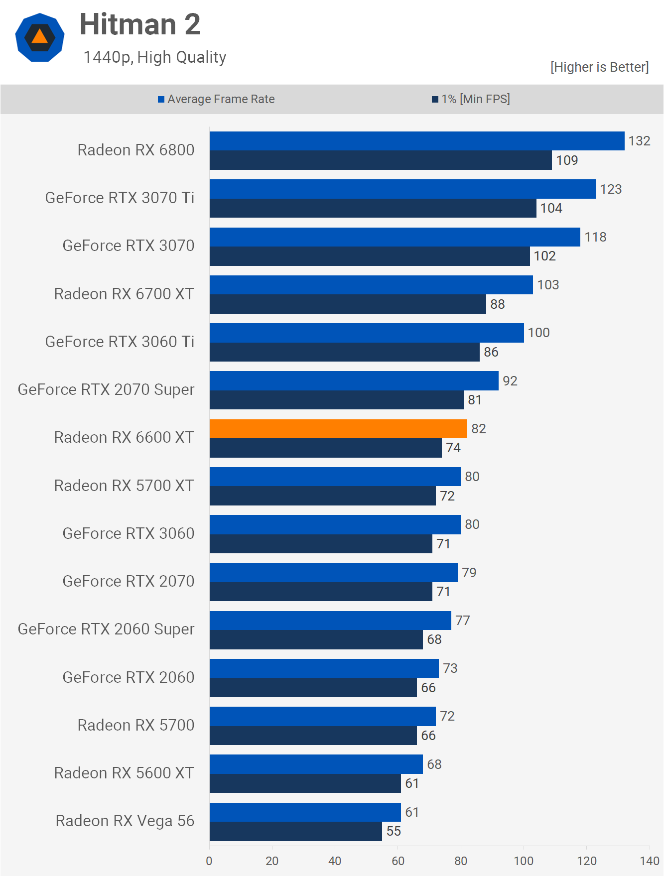 The Hitman 2 results are typical of what we've seen in the majority of titles and that means the 6600 XT performs closer to the RTX 3060 rather than the 3060 Ti, despite being priced closer to the latter. At 1080p, it was 14% slower than the 3060 Ti and just 4% faster than the 3060. As we've seen time and time again, the margins extend slightly in Nvidia's favor at 1440p.