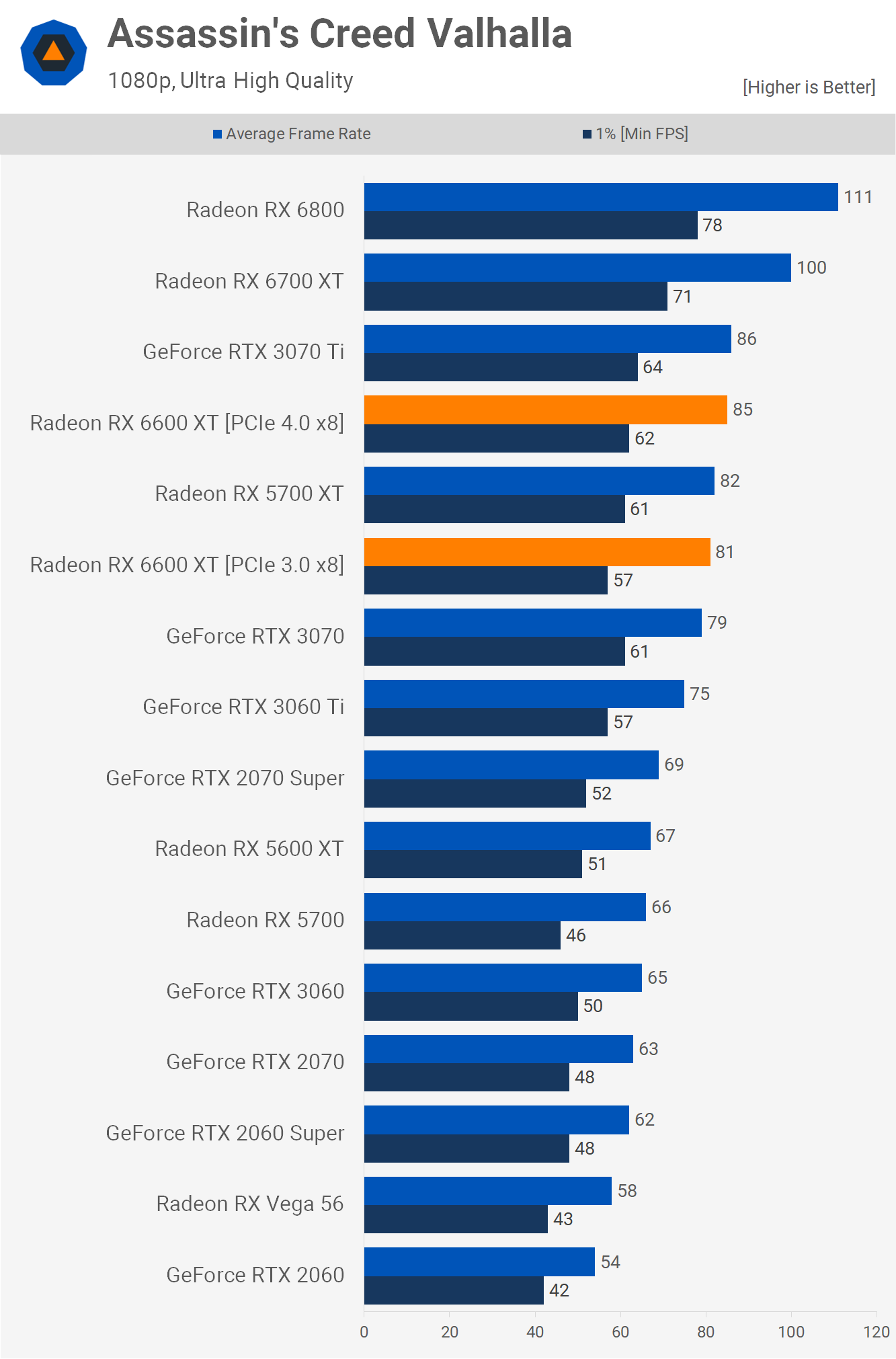 Something worth noting is that the 6600 XT is just 5% slower than the 5700 XT. That's disappointing given it's just 5% cheaper than the 2-year-old Radeon GPU (at MSRP, not the inflated price). So while impressive when compared to GeForce offerings in this AMD-sponsored title, the results are less impressive than they seem.