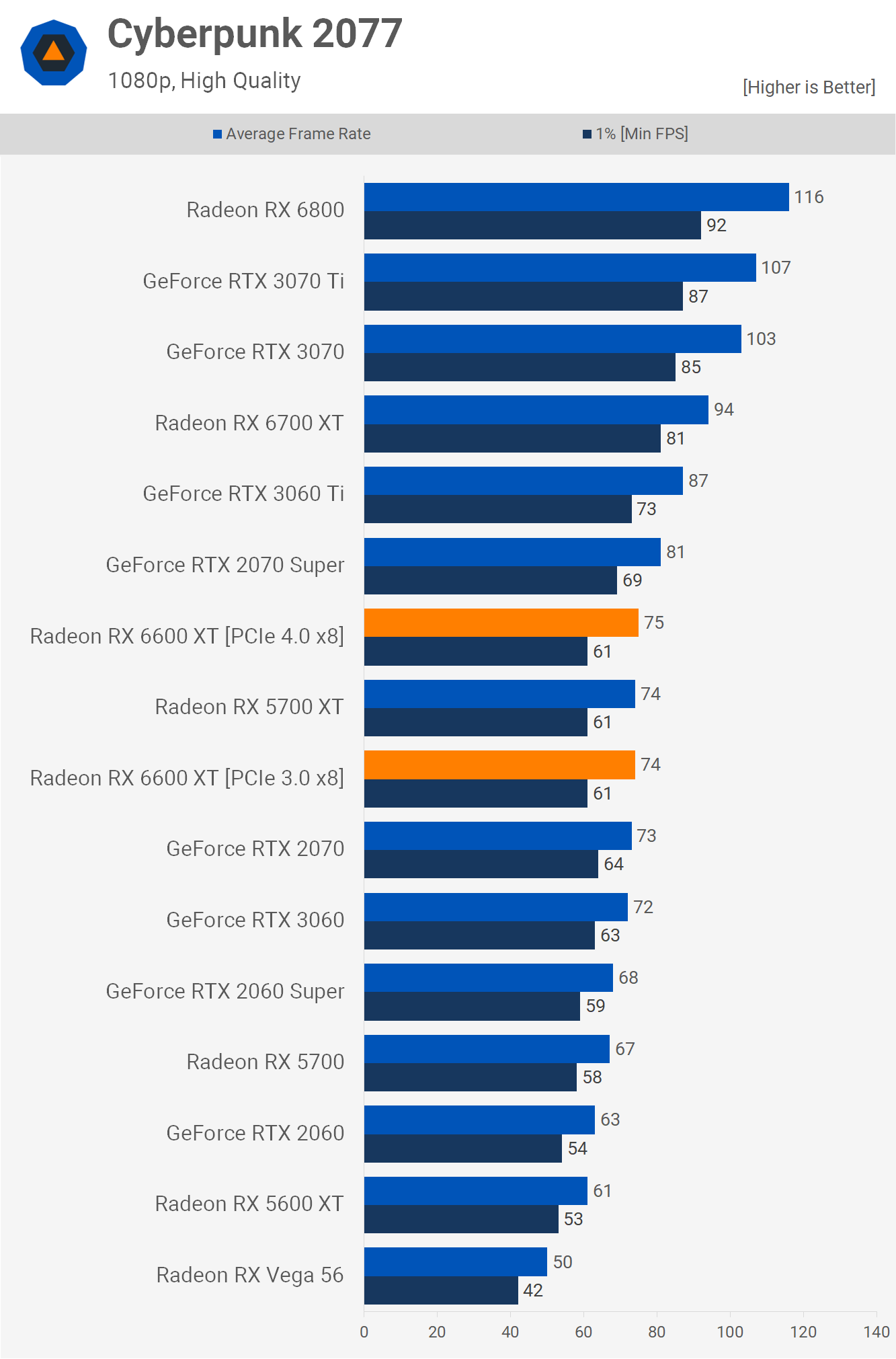 However, in some games the reduced PCIe bandwidth makes no difference and we see that in Cyberpunk 2077.