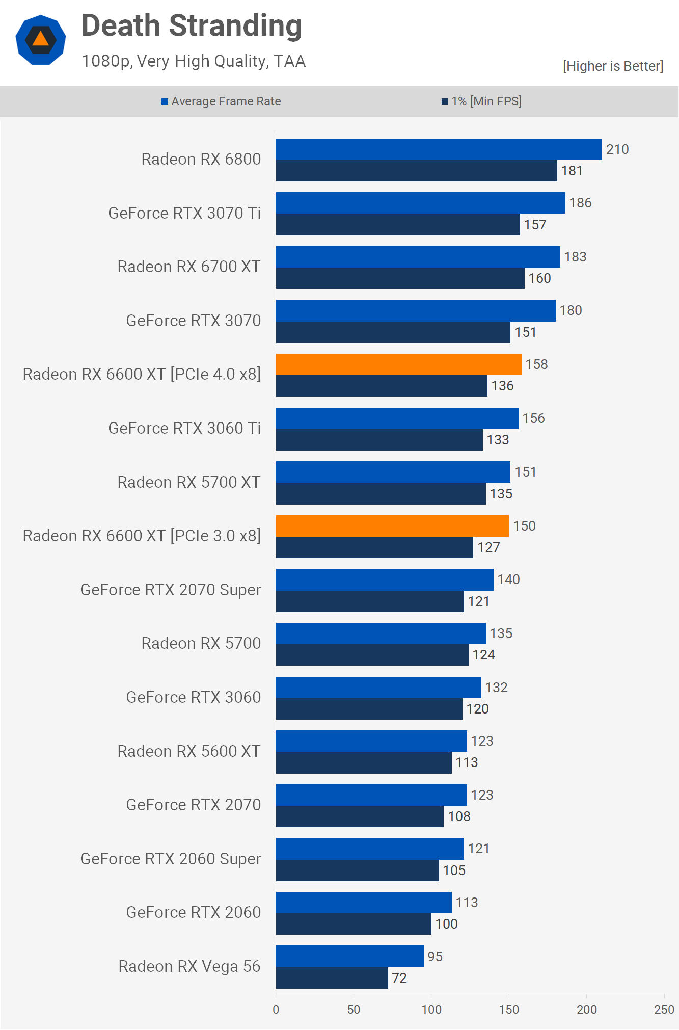 Like most Radeon GPUs, the 6600 XT performs well in Death Stranding, delivering 158 fps on average at 1080p, allowing it to match the 3060 Ti which frankly should be the minimum level of performance offered by this product.