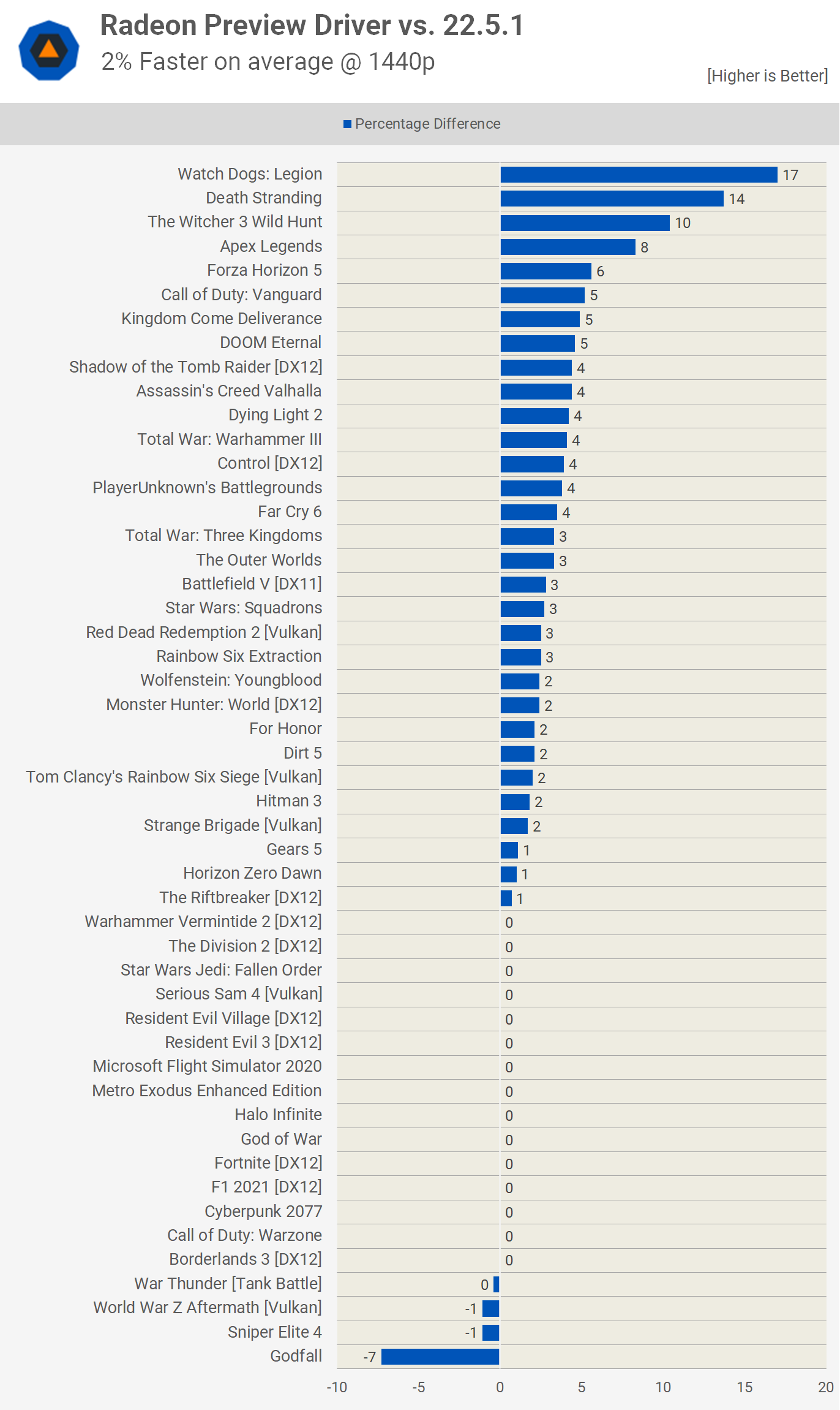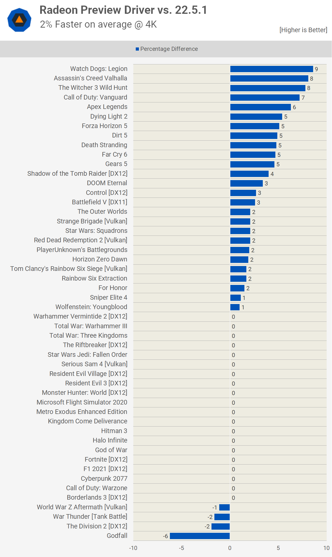 Certainly, if you focus on games such as Watch Dogs Legion, Death Stranding, The Witcher, Apex Legends, Forza and Vanguard, to cite a few good examples, you're looking at a 10% improvement on average which is a very substantial uplift from a driver update.
