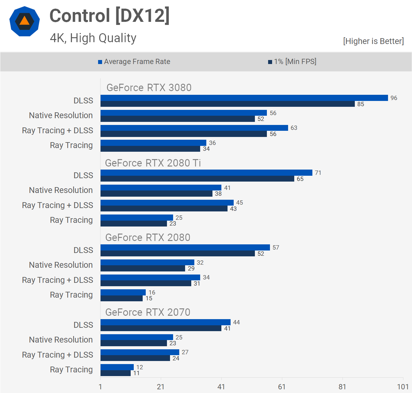 Control is where things start to get much more interesting, because now DLSS 2.0 becomes a factor.
