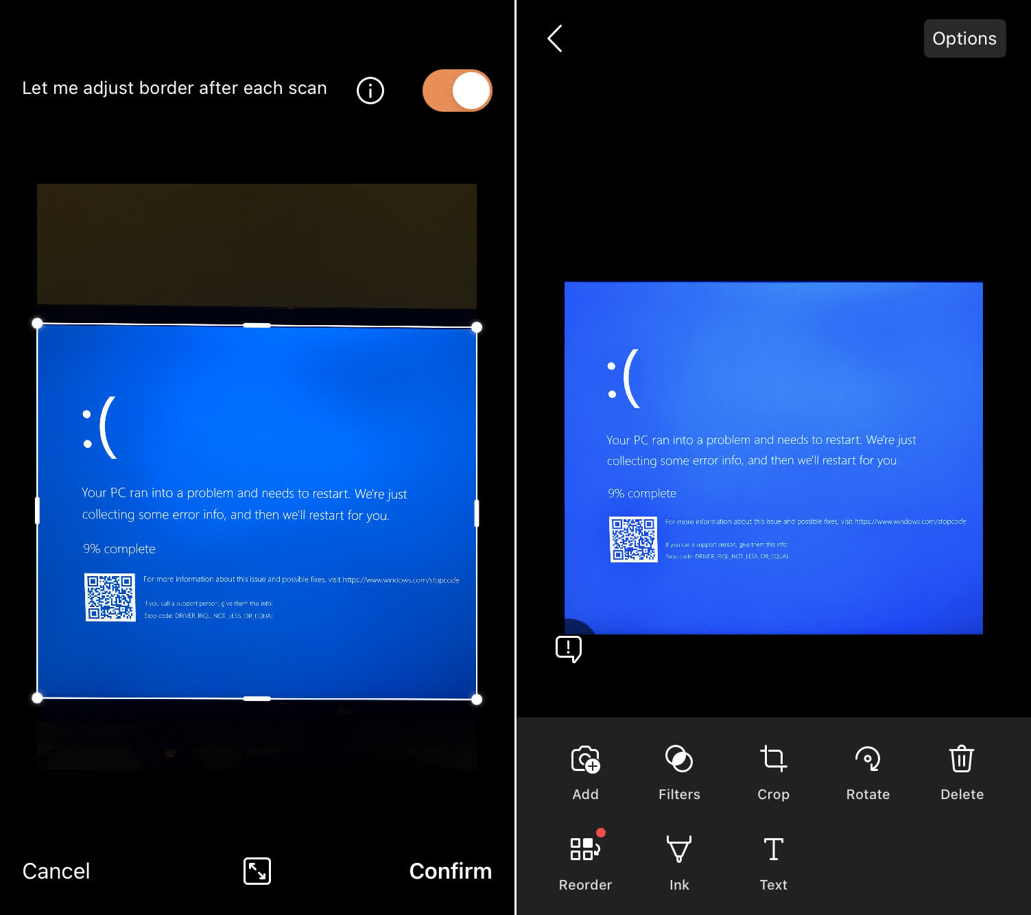 Both work in a similar way, in that they allow you to point your phone camera at any display and capture clear images of something on it – an error code, an app window, a graph, a drawing, or something you'd been working on before your PC froze due to a technical issue. If the capture includes text, you can even attempt to extract text from it.