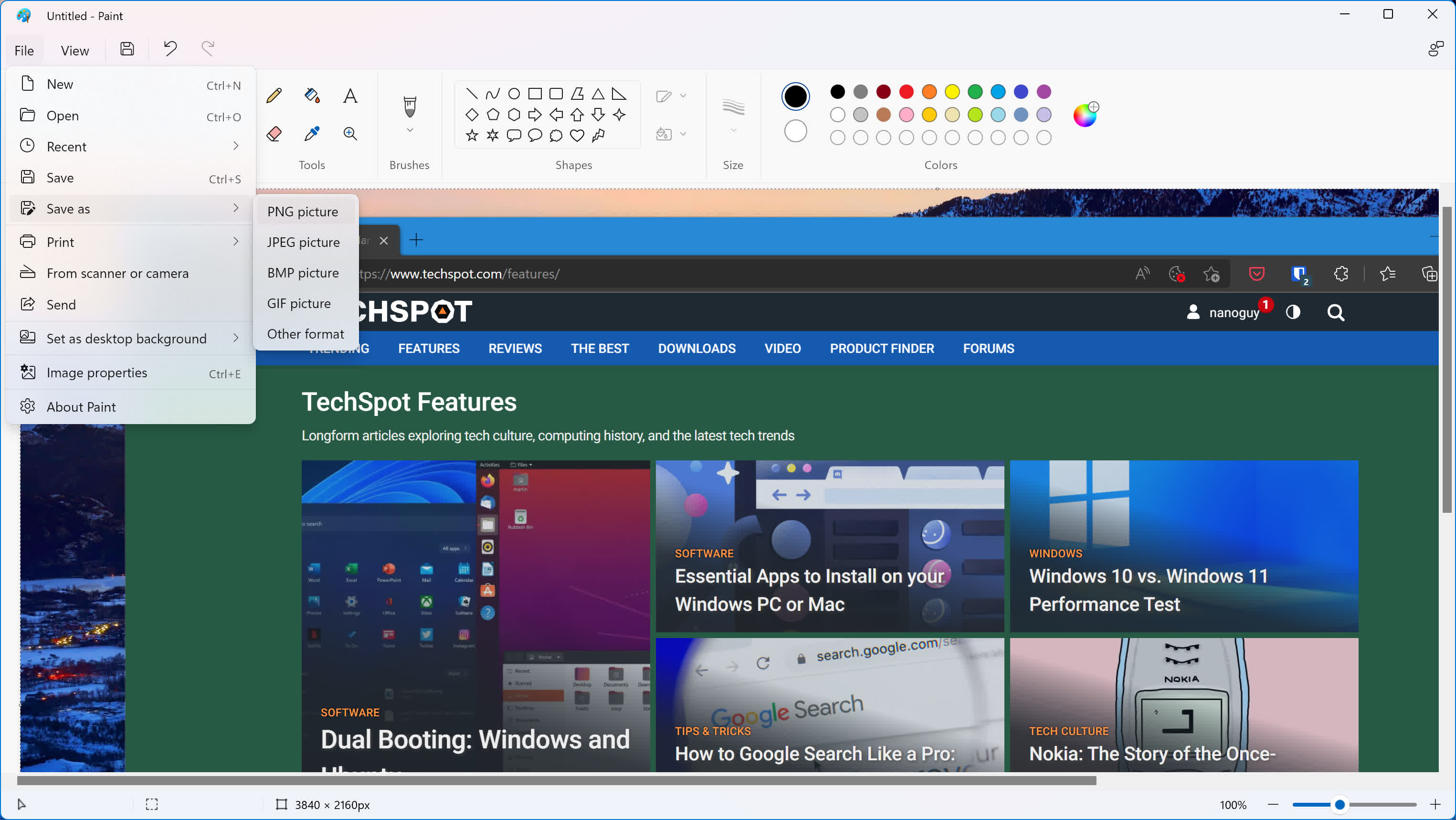 To crop, annotate, and save your screen capture, you'll have to paste it into an app like Paint or an image editor of your choice. For very simple editing, you can use Paint which is available in all Windows versions. Open Paint from the Start menu, and then press Ctrl + V on your keyboard to paste your screenshot. From there, you can crop and edit your screenshot to your liking, or save it directly by pressing Ctrl + S on your keyboard.