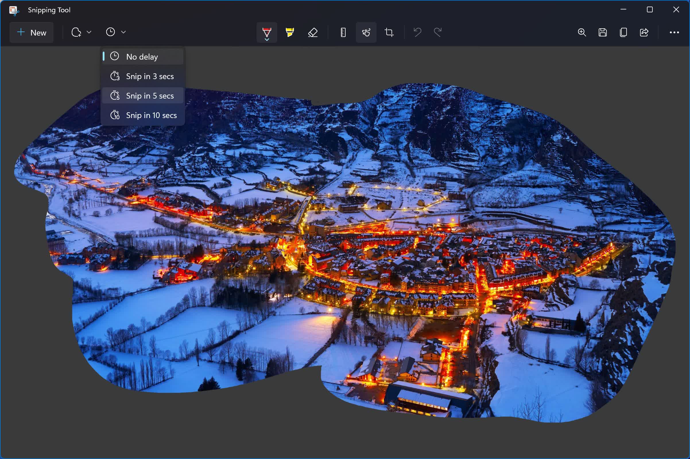 The Snipping Tool also allows you to do a timed screen capture, which is useful for tricky situations where you need to take screenshots of pop-up menus or multiple dialog boxes. Choose the desired delay and then perform a snip like you normally would.