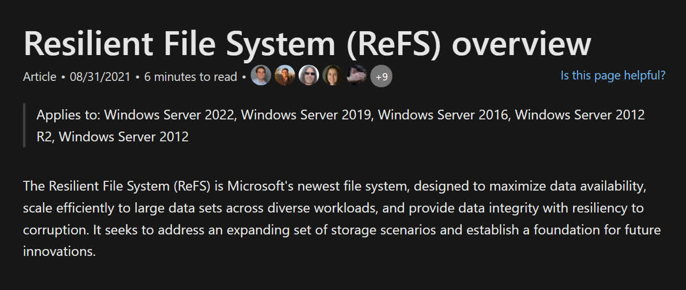 In the open-source world, Btrfs (pronounced "better FS" or "Butter FS") is gaining traction with similar features to ReFS. Again, the primary focus is on fault-tolerance, self-healing properties, and easy administration. It also provides better scalability than ext4, allowing roughly 16x more data support.