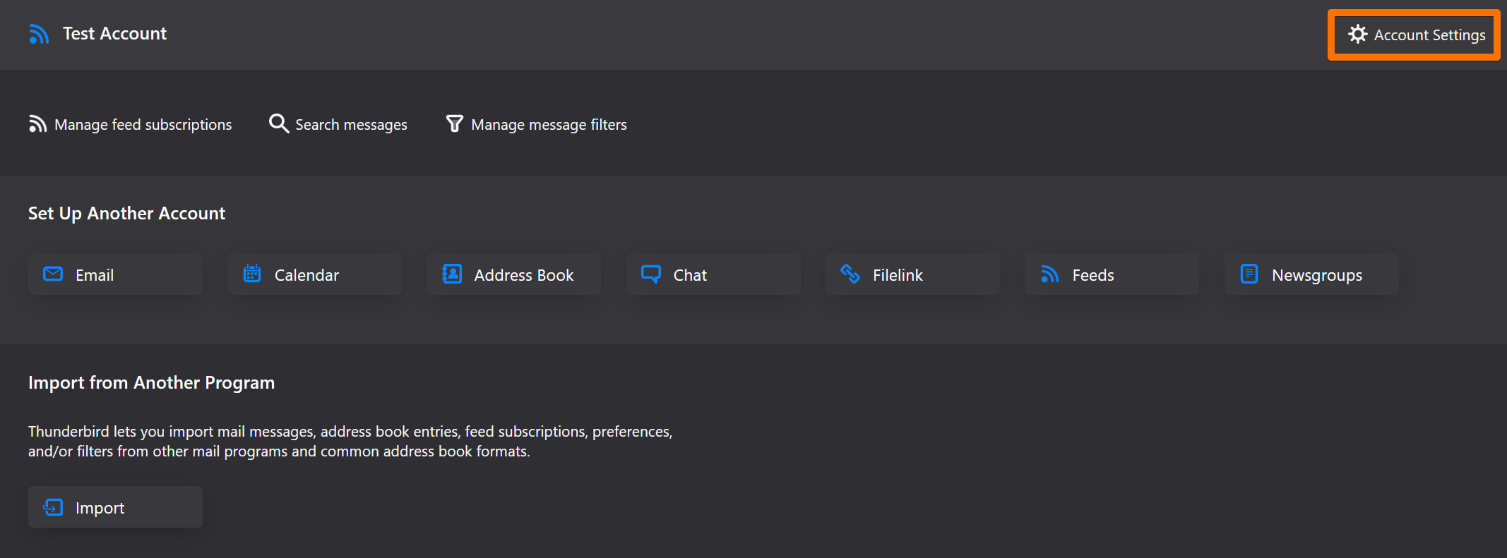 2. Click on Account Settings to map the exported files to Thunderbird.