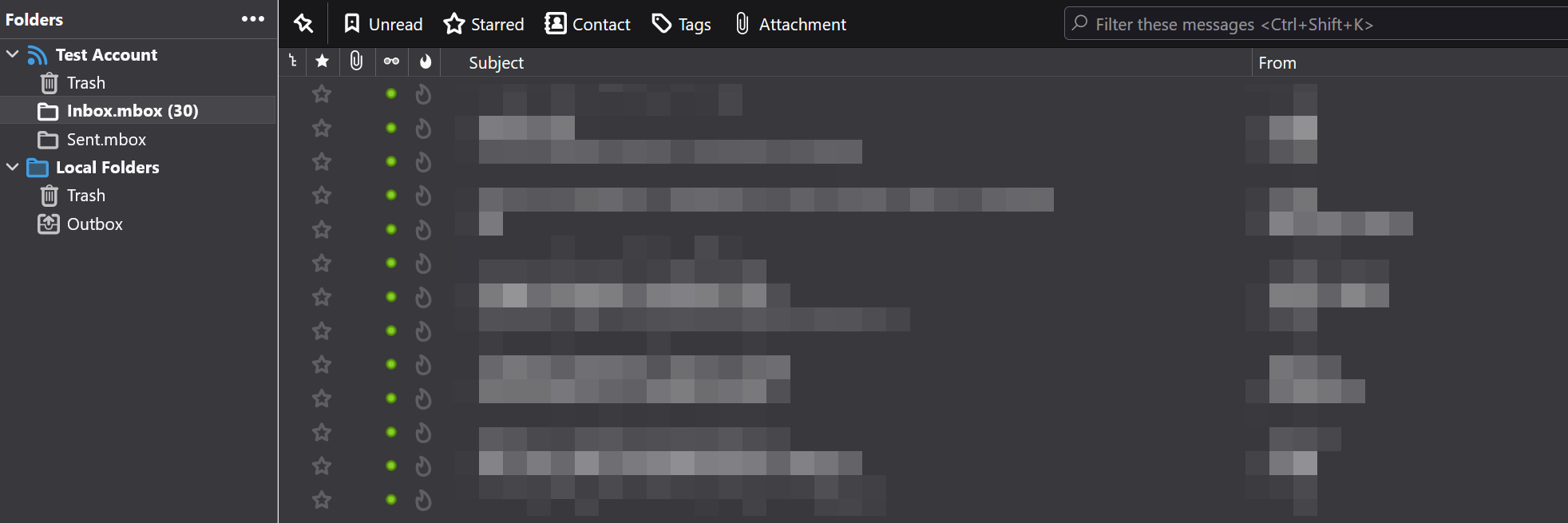It is always a good idea to double-check the exported data to verify it contains the required emails. This can be done using Mozilla Thunderbird and a Feed Account.