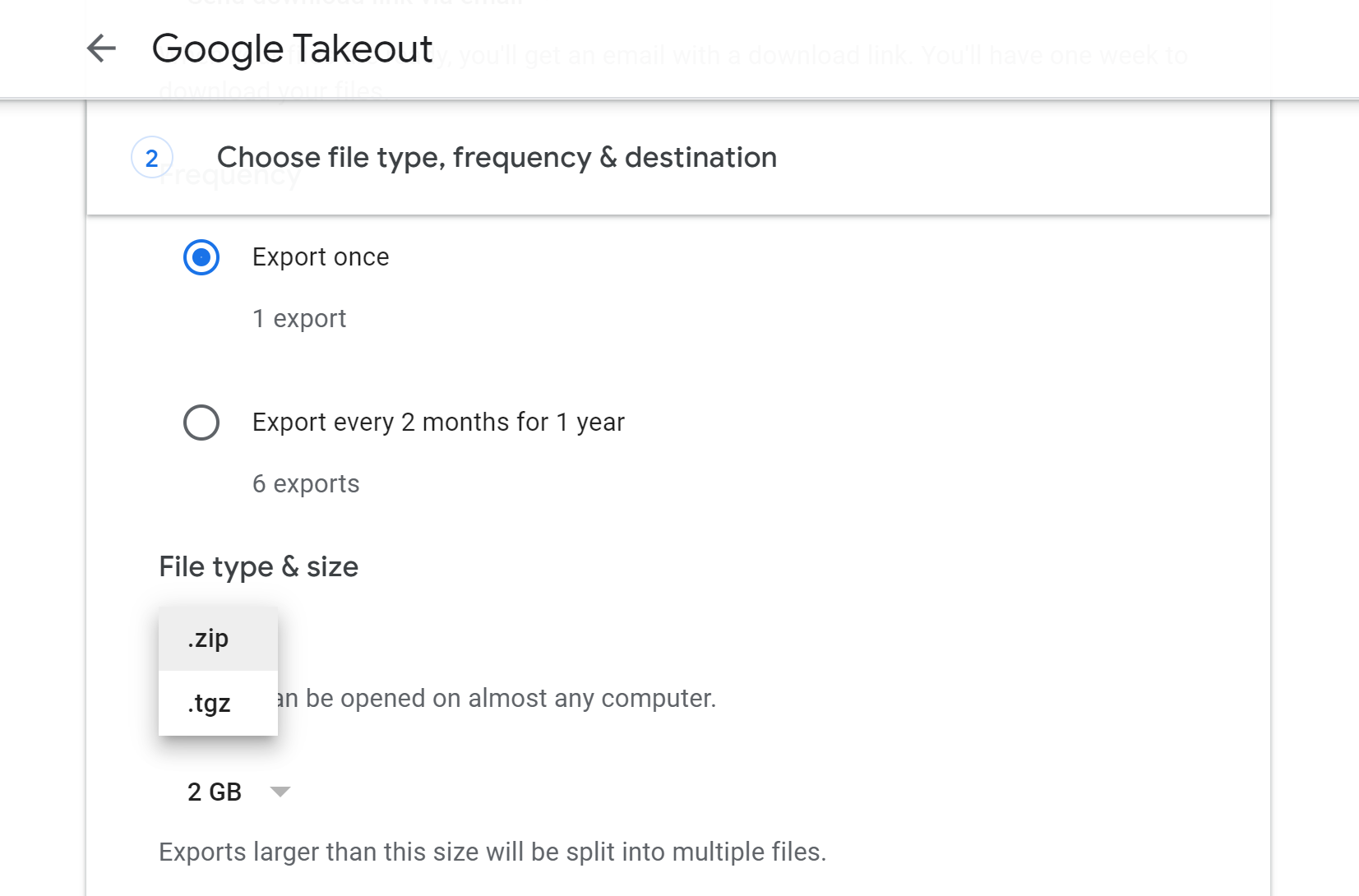 12. Export files can also be in .zip or .tgz formats. Select the desired compression format and proceed to the next option.