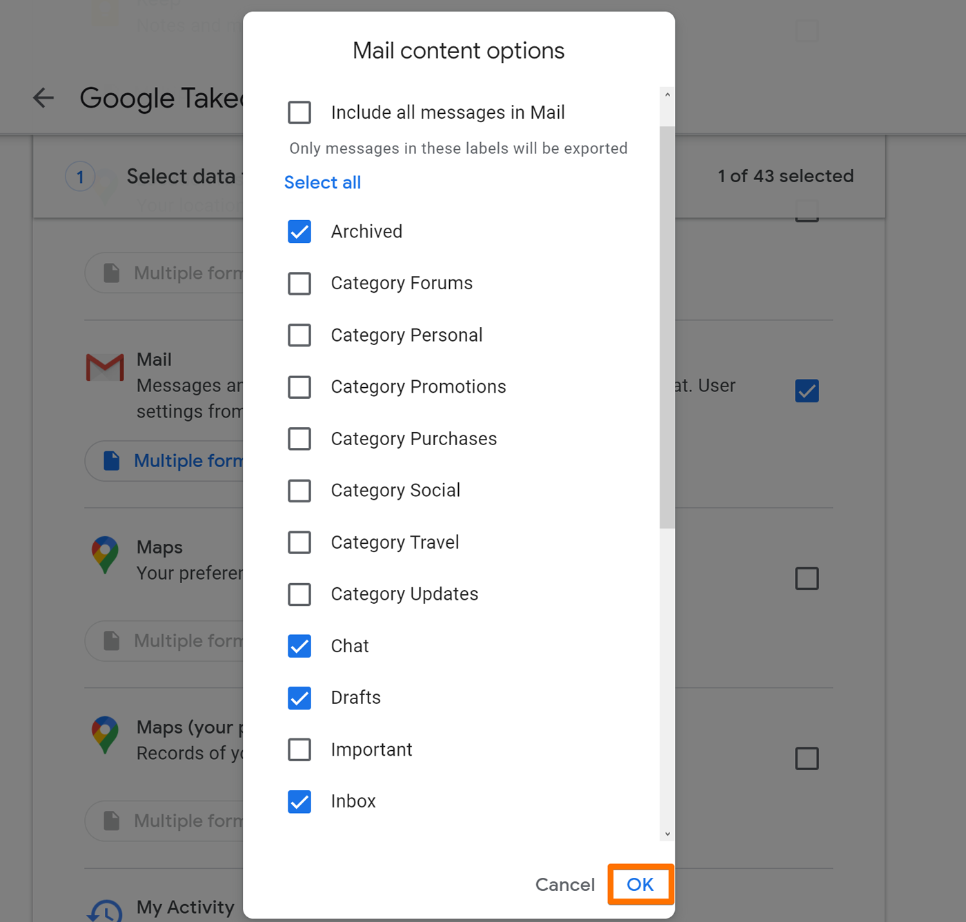 Gmail data can be exported using MBOX or JSON formats and you can specify whether to export all emails or specific labeled content. Without further ado, let's dive right in...