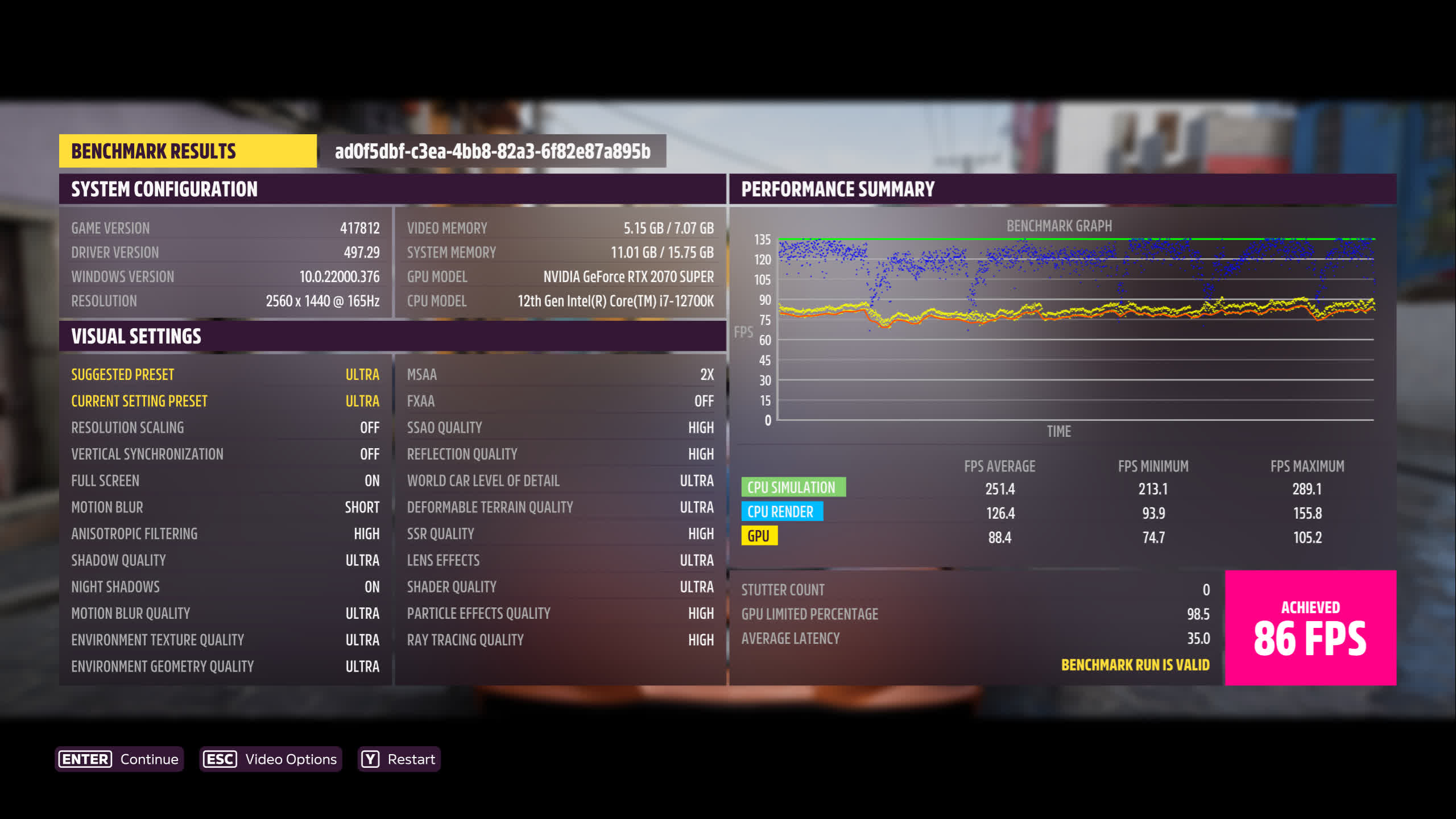 My GeForce RTX 2070 Super was purchased soon after the refreshed Turing line arrived. Asus offered a trade-in on older cards, so I took advantage and waved goodbye to my GTX 1070. The upgrade brought considerable gains to 2019 titles and older. Sadly, the i5-4670K bottleneck is becoming ever more apparent in modern games, especially Forza Horizon 5, which often experiences terrible rubber banding, hitching, and other issues, not to mention the measly 55 fps @1440p with medium settings. My PC's GPU/CPU combo makes it comparable to a Porsche 911 but with a set of wheels from a child's bicycle.