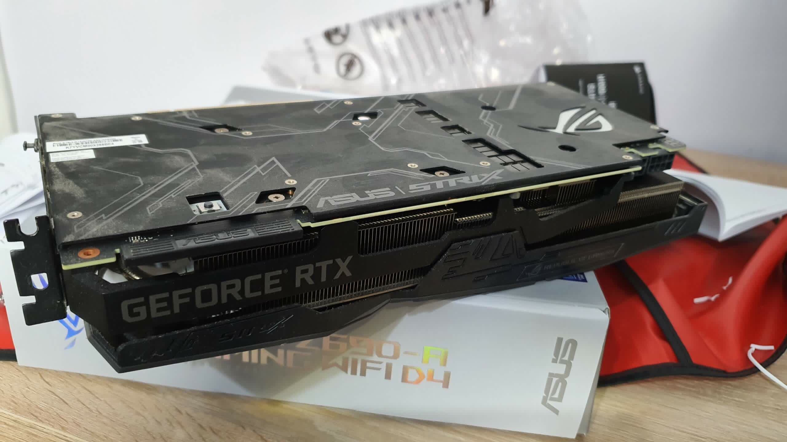 I open up my old case and am appalled at the dust levels, though I reason that I'll be able to see debris building up in the new one. The Asus ROG 2070 Super pops out, and it's given a blast from the air canister before being put into its new setting.