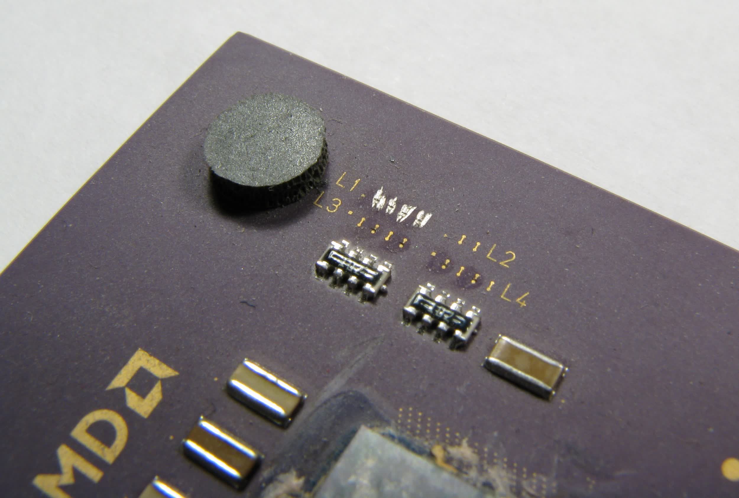 It didn't take long before enterprising enthusiasts realized that bridging the gap between the cut L1 bridges on the processor could enable multiplier adjustments. The apparatus of choice for many was a basic pencil, as the graphite was conductive enough to get the job done, but others opted for more proven tools like conductive pens.