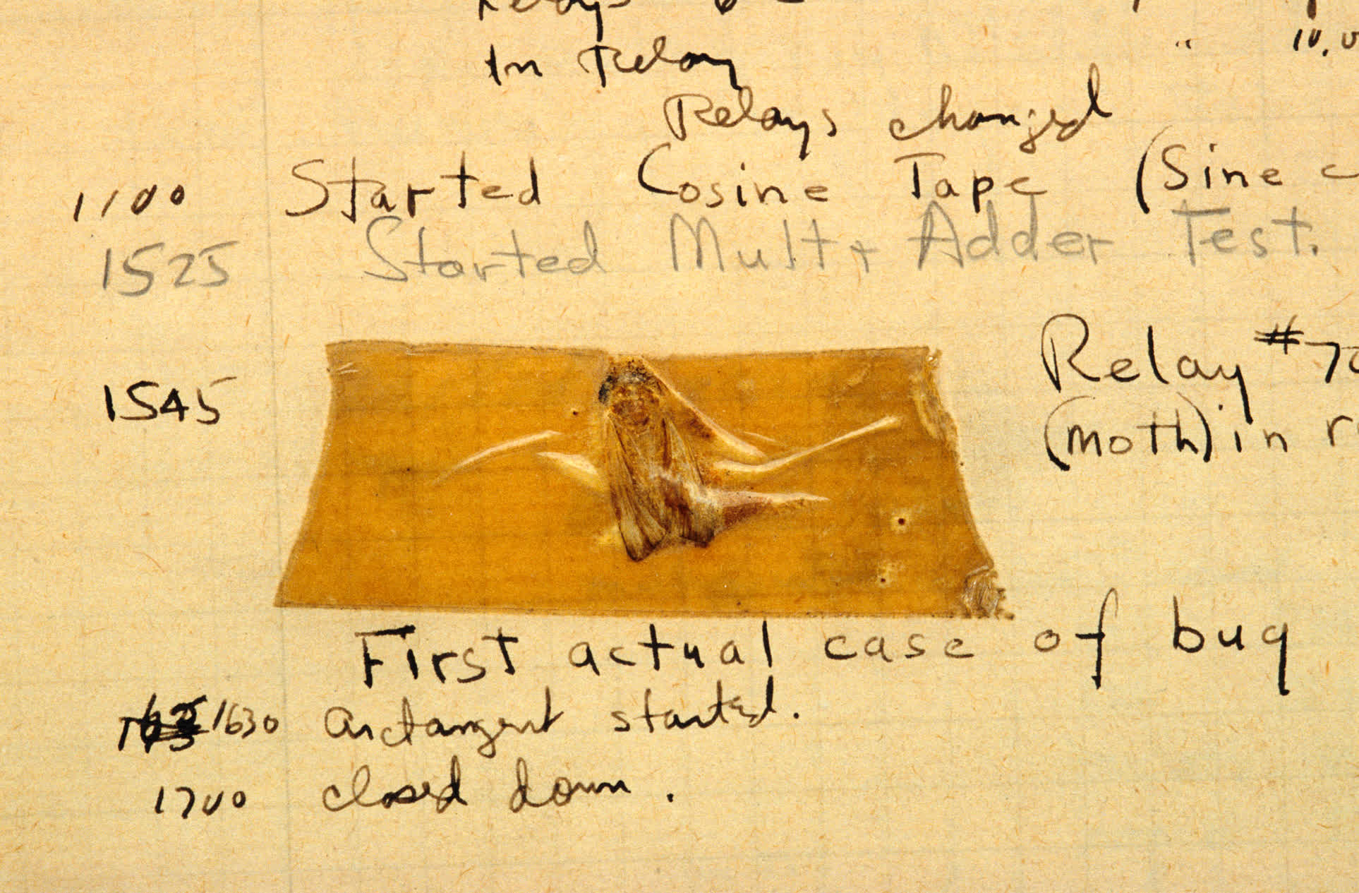 In 1947, computer pioneer Grace Hopper found herself working on a Mark II Computer at Harvard University. It was at this time that her associates discovered a moth had gotten trapped in one of the computer's relays and was causing an error. The operators removed the moth and taped it in their log book, identifying it as the "first actual case of bug being found."