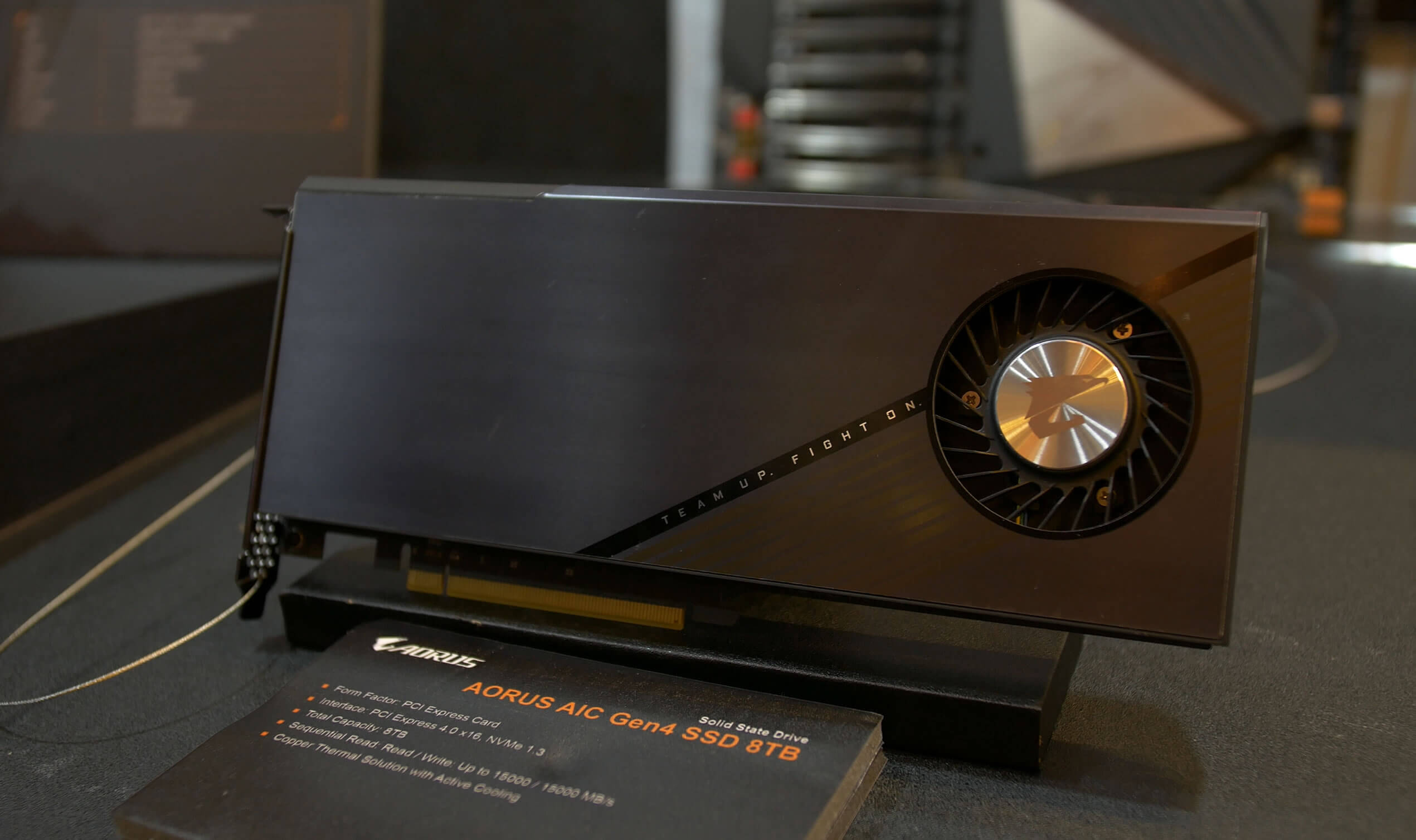 AMD X570 motherboards are paving the way for an entirely new generation of solid state drives with astonishingly fast speeds. We saw loads of new M.2 PCIe 4.0 SSDs at the show, most boasted sequential speeds of around 5GB/s, which is very impressive compared to already speedy PCIe 3.0 models, but nothing compared to the Gigabyte Aorus AIC Gen4 8TB SSD that packs not one but four M.2 drives on an expansion card in RAID for a throughput of over 15 GB/s. We're not entirely sure who needs a desktop PC with a storage device capable of 15 GB/s, all we know is we want one.