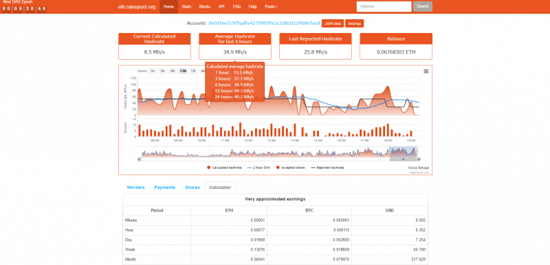 With pool mining, the problems are split up and distributed to each member. Your profit is proportional to the amount of work you contributed to each round of mining. Pools do charge a small fee (1-2% usually), but they're the best way to maximize your profit. Be careful of scams here again in both the miner and the pool you choose. I went with NanoPool as my mining pool and Claymore as my miner. Other pools include Ethermine and MinerGate. There are also other miners such as Genoils and QtMiner.