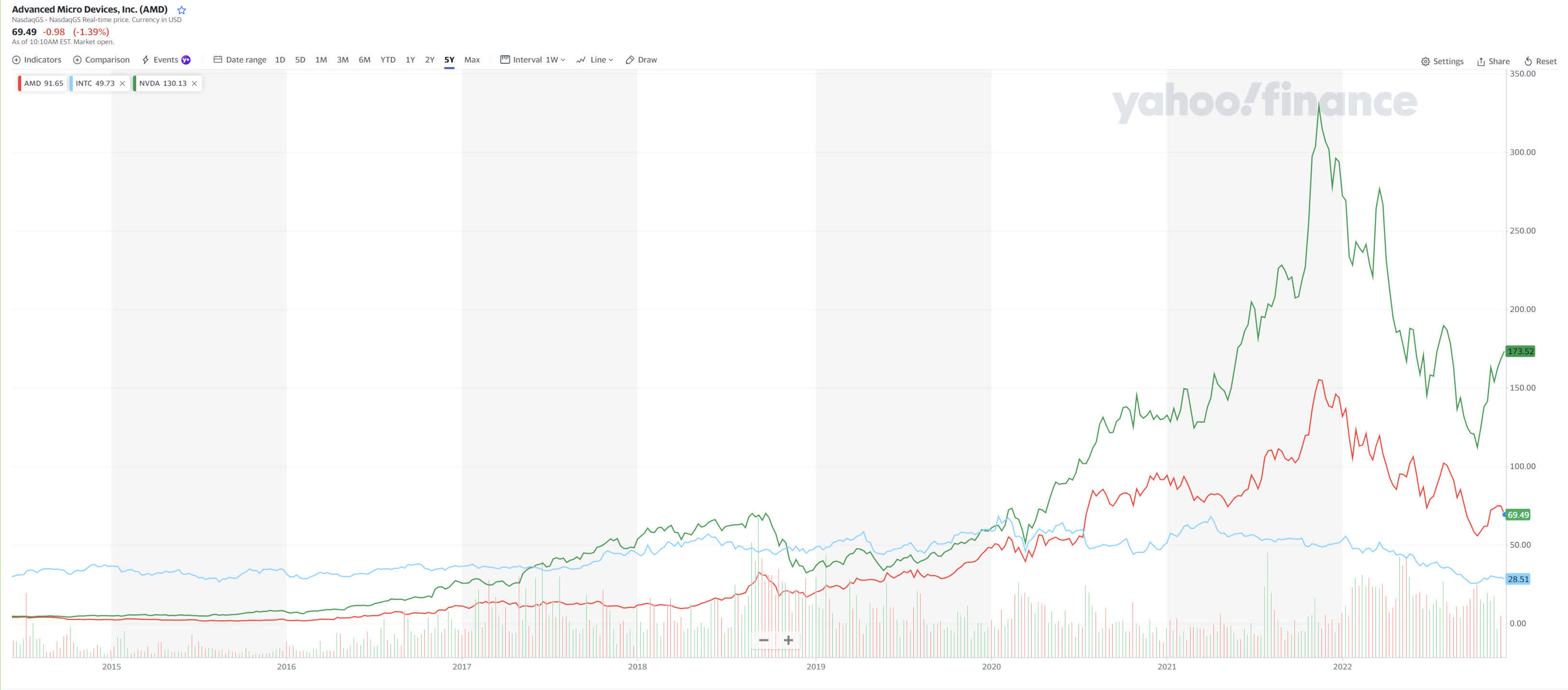 And despite the success of 2021, $16.4 billion of revenue still puts them behind Nvidia ($26.9 billion for roughly the same period) and light years away from Intel ($79 billion). The latter has a much larger product portfolio, of course, and its own foundries, but Nvidia's income is reliant almost entirely on graphics processors.