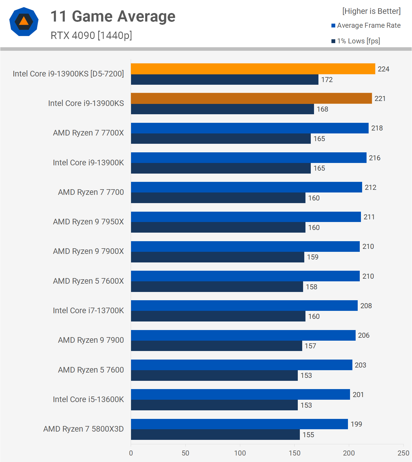 Then for those of you interested here's the 1440p data, under these slightly more GPU limited test conditions the 13900KS was 2% faster than the 13900K, so that's rather pointless.