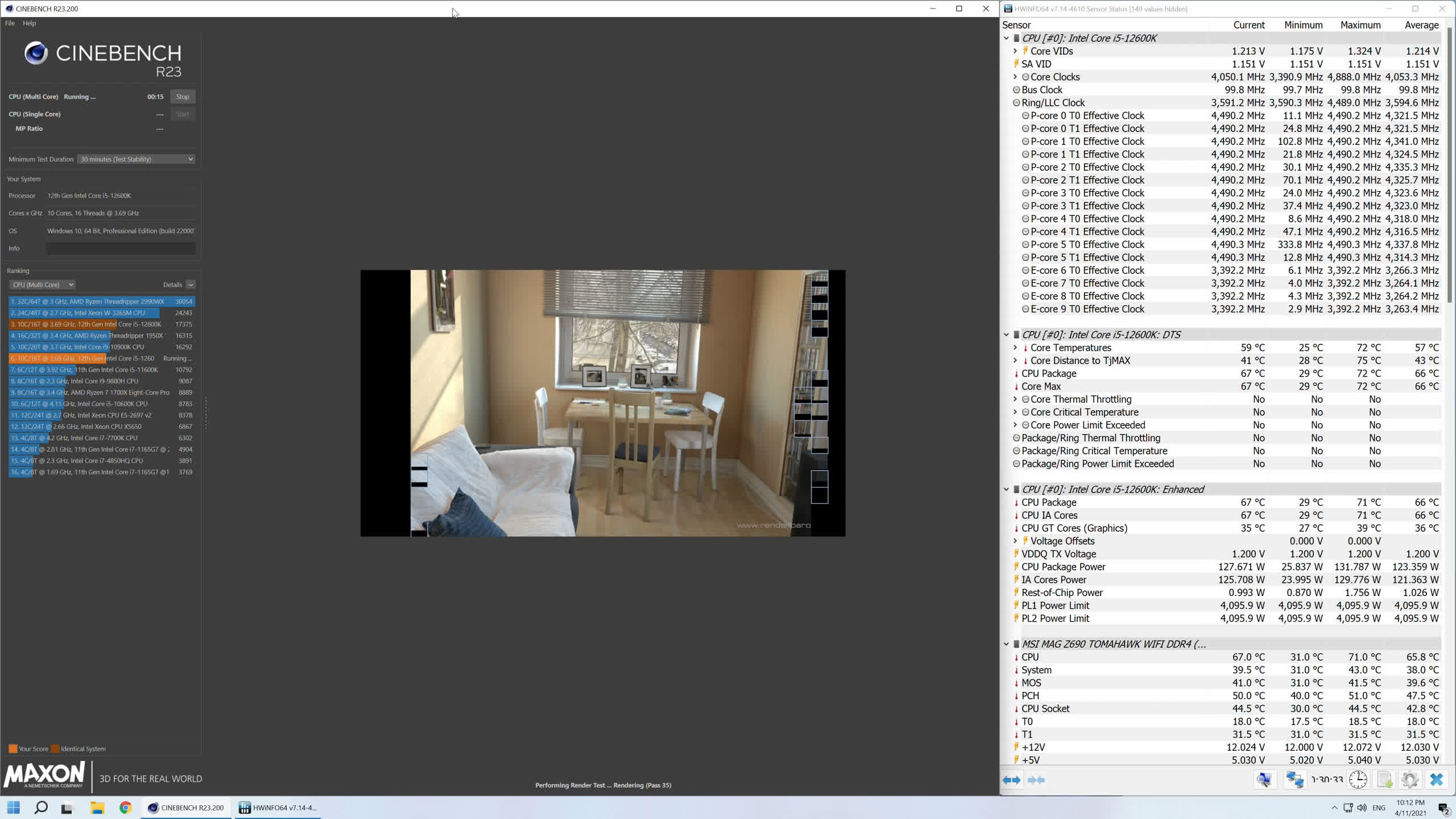 That's a reasonable temperature that makes the 12600K comparable to the 11600K or 5800X. It also means with the 240mm AIO we do have some thermal headroom for overclocking and this is something we'll explore in the future.