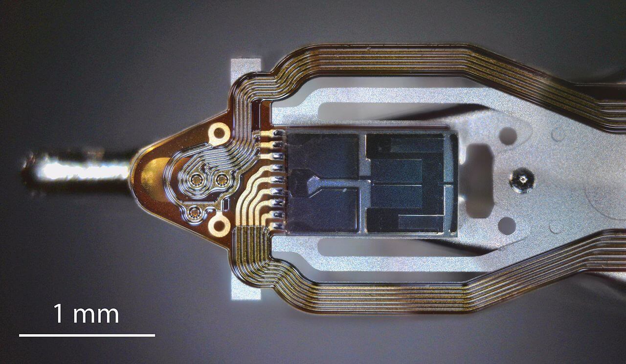The signals produced by the TMR are very weak and have to be run through an amplifier, to boost the levels, before they can be sent onward. The chip responsible for this can be seen near the base of the actuator arms, in the image below.