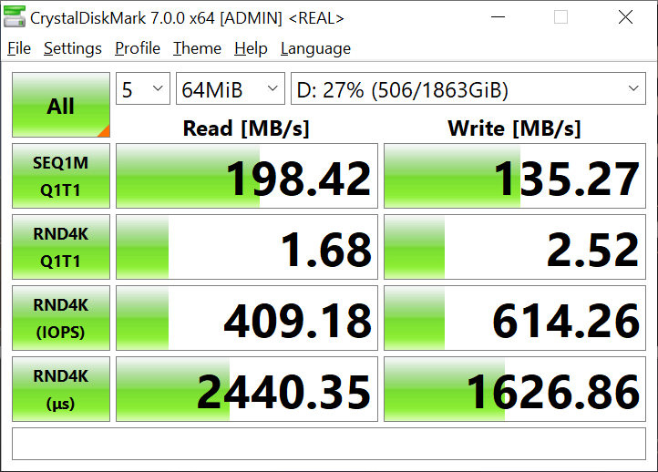 Before we move on to pull apart another type of storage drive, let's make a reference point for the performance of a typical HDD. We've used CrystalDiskMark to benchmark a WD 3.5" 5400 RPM 2 TB hard drive: