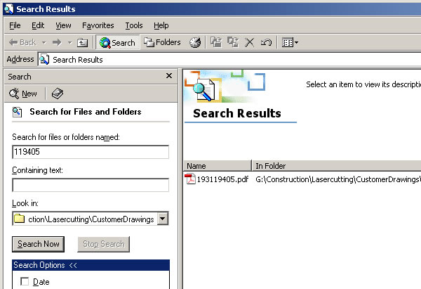 This becomes all the more fun if you're actually at work trying to find a program in a directory hierarchy with company names, containing hundreds of thousands of files, all of them preceded by a four letter number. So, to find something referred to as "119405" for compatibility with DOS 8.3 file names, you need to search for "193119405" or "*119405" every single time you make a search. Again, this isn't the case with Win2k or XP.