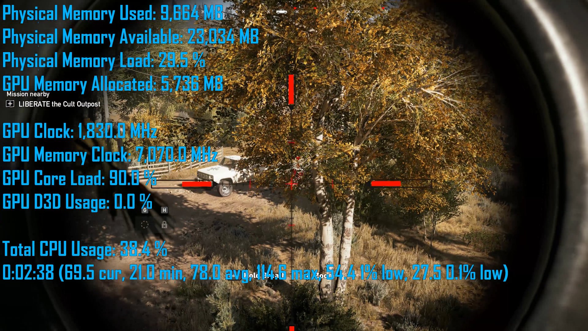 On Far Cry 5 we saw RAM usage hit 9.8GB, though VRAM was reasonably low at 5.8GB. At almost 10GB of system memory you're starting to get a bit far beyond what 8GB of system memory will let you get away with.