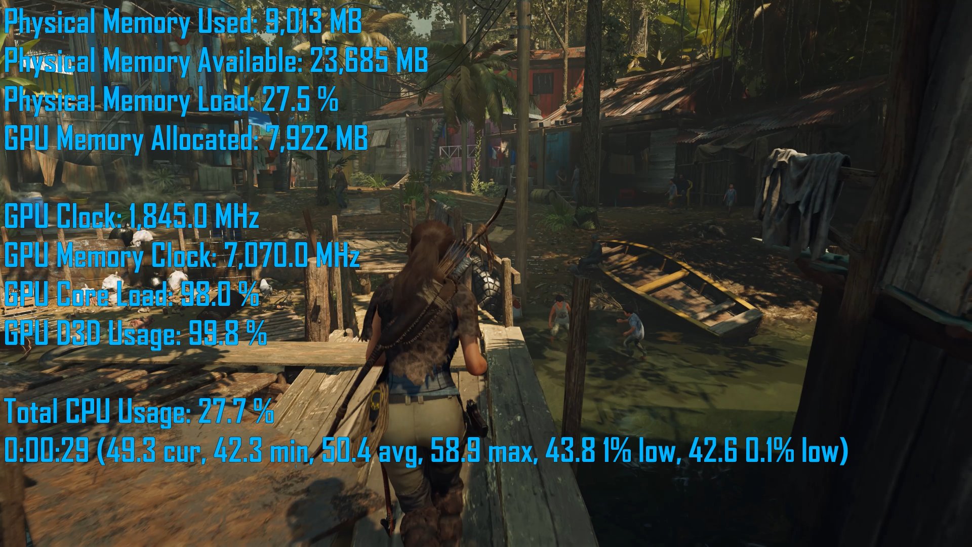 Shadow of the Tomb Raider is certainly one of the best looking games released this year and while it uses a reasonable amount of system memory, it's certainly not extreme at around 9 GB. VRAM usage was comparably higher over 8GB consistently.
