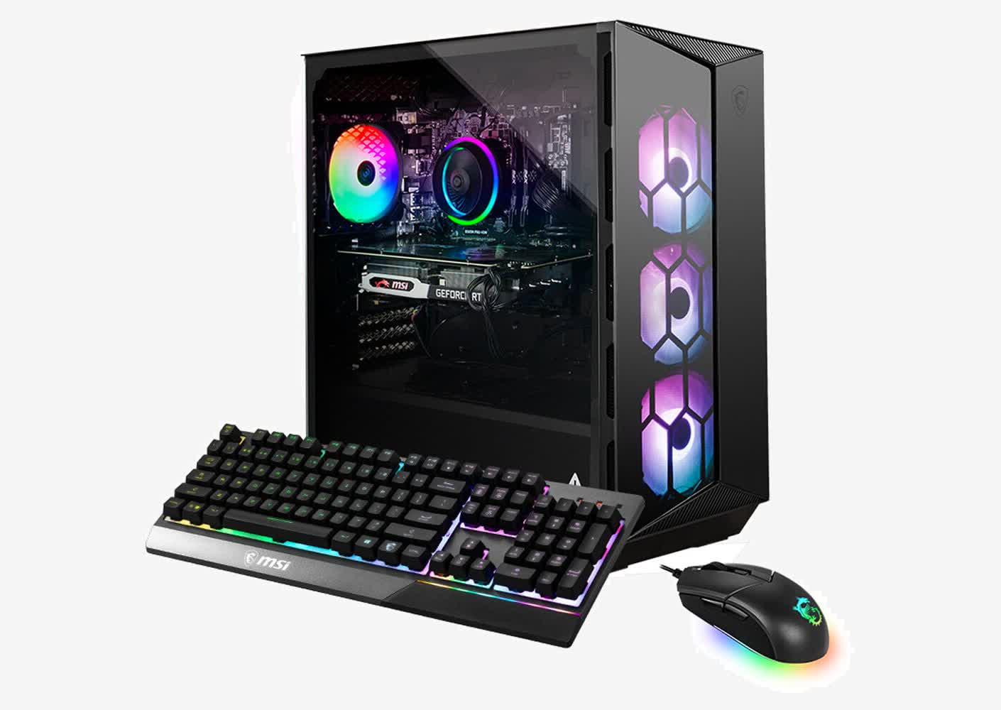 At the time of publishing this article, you may be able to get a whole PC that includes the RTX 3080 for the same price as the card itself from MSI. The MSI Aegis ZS is powered by the Ryzen 7 5800X, one of the best gaming CPUs you can buy. It comes with MSI's own Dragon 120mm liquid cooler, 2 x 8GB of RAM (speed not mentioned), a 1TB SATA SSD �' a strange choice considering the small premium on PCIe SSDs, but not a big deal for gaming �' and a 650W, 80 Plus Gold power supply in an ATX case.