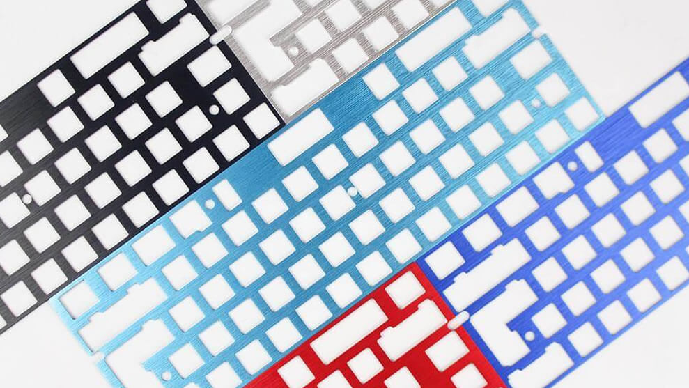 The mounting plate is one of the last components you should select as it is dependant on your case and PCB choices. The plate protects the PCB and acts as a guide to hold switches in place when soldering them to the PCB. It also makes the final product look nicer and comes in a variety of materials and finishes to add another personal touch to your build. They all perform the same function and the only real consideration when selecting your plate is to make sure that the cutouts allow you to use your desired layouts and fit with your PCB and case.