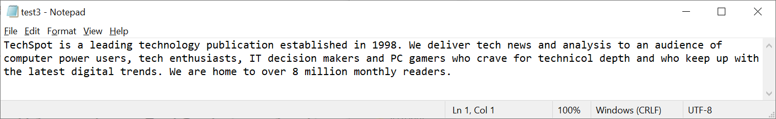 Let's have a look at some examples, the first of which is a simple text file (below), containing some critical information! All files contain data that cover more than just than, say, the text we can see – there will be bits allocated to telling us what type of file it is, how the data is arranged, and so on...