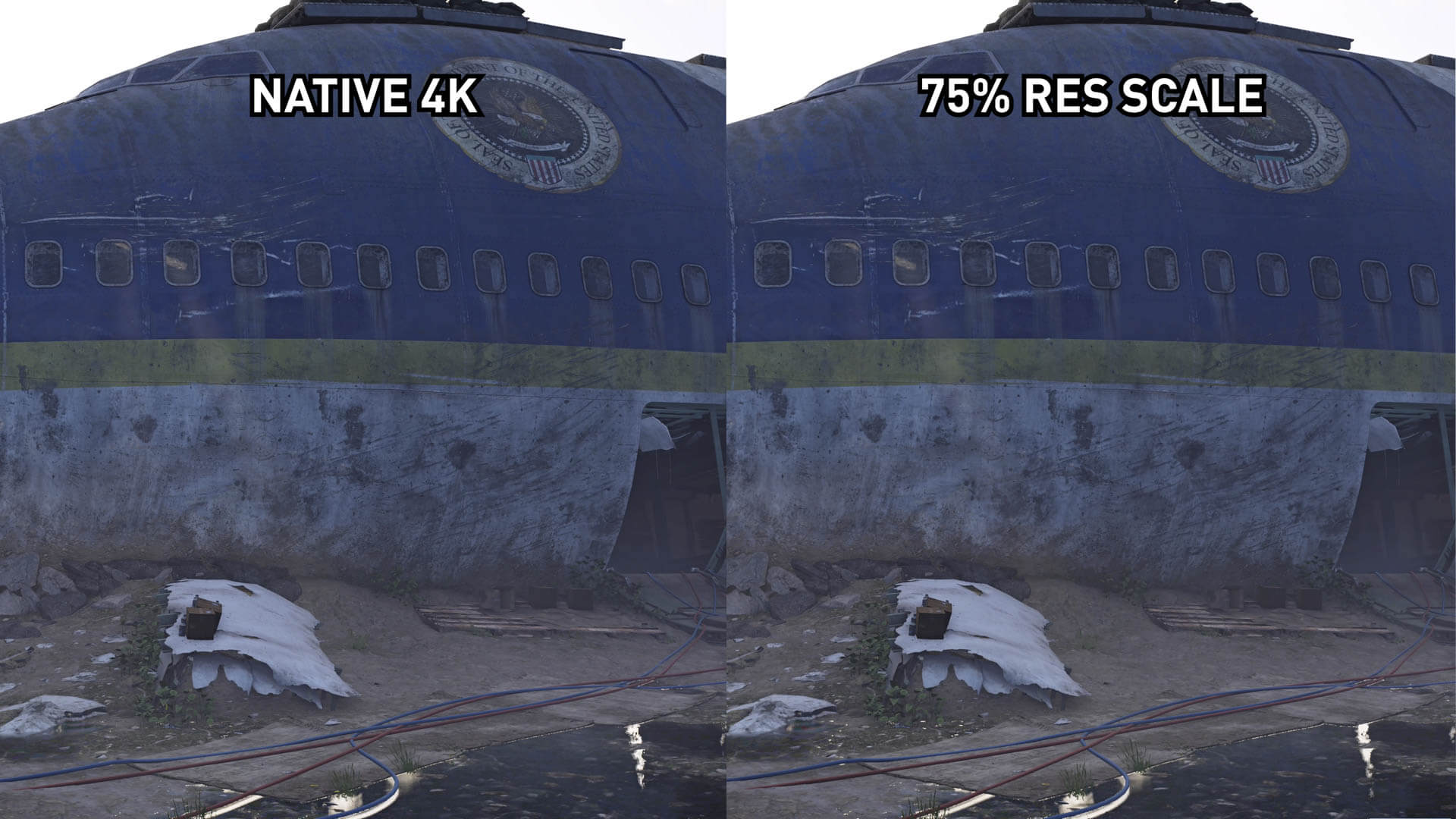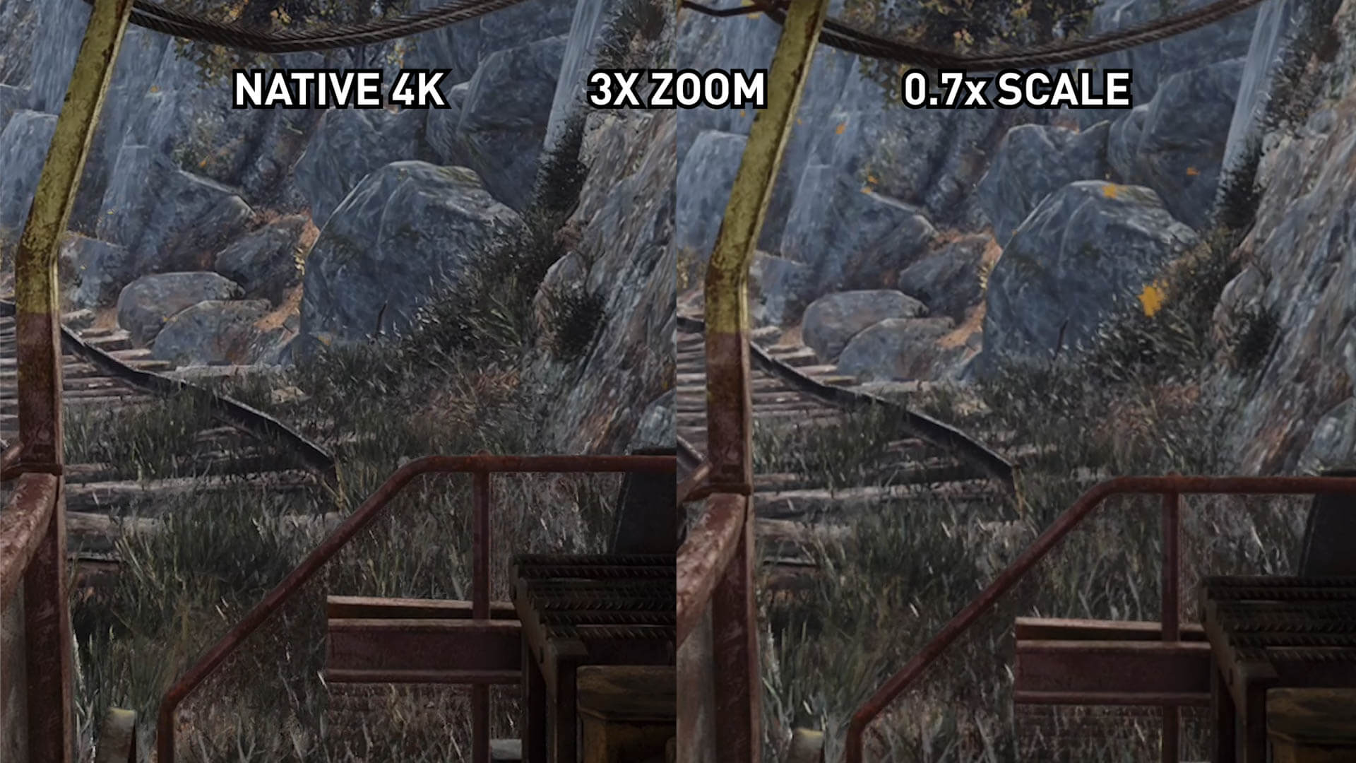 Time to look at some results when downsampling. We'll start with 1440p vs 4K and right away the 1440p native image is much softer and looks blurry when upscaled to 4K. Not an ideal way to play on a high-resolution display.