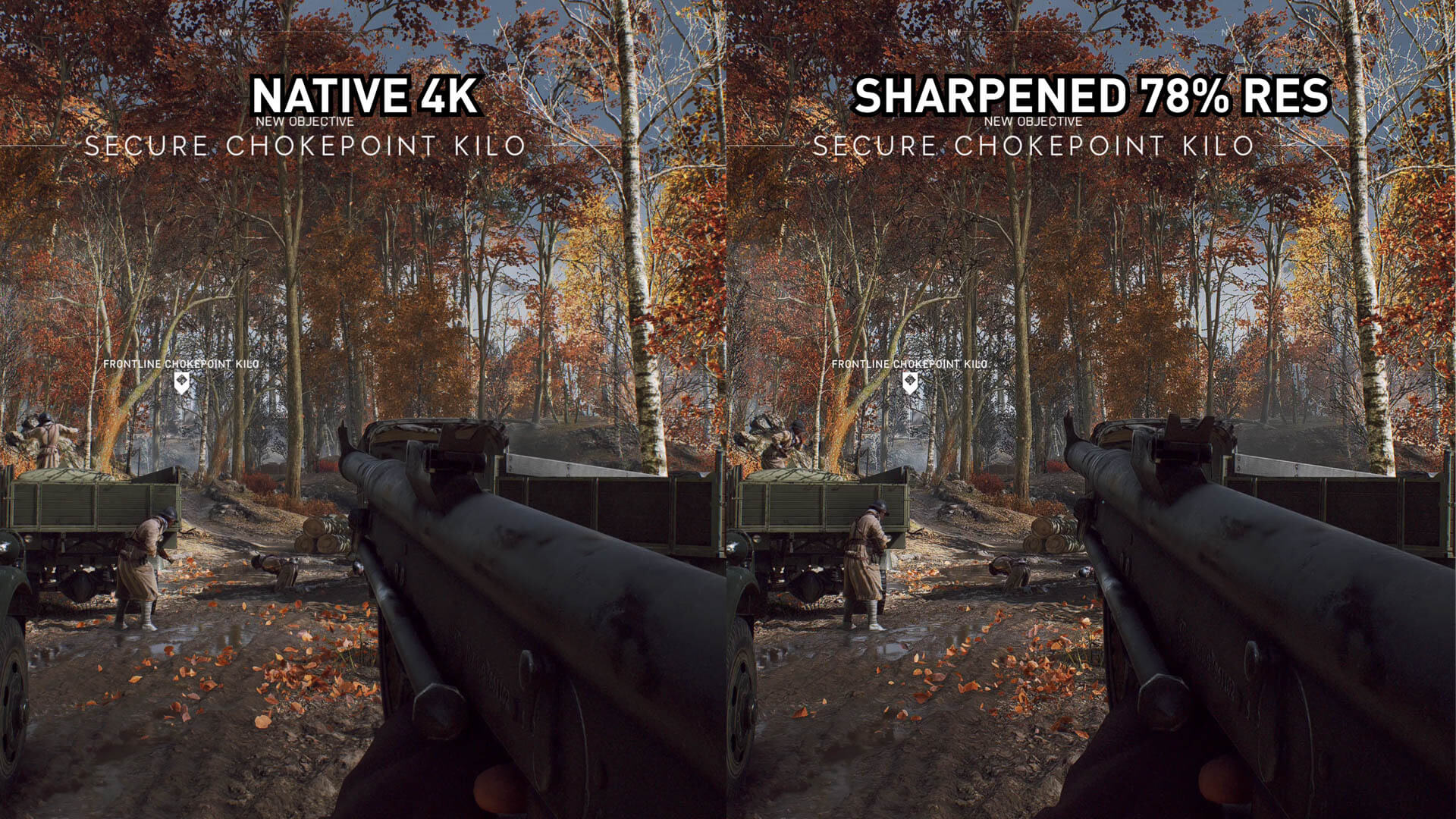 Sharpening isn't quite as effective with this foliage dense scene from Battlefield V but it does a decent job of getting close enough to the native 4K image. Of course, that small visual quality loss comes with upwards of 30 percent performance uplift.